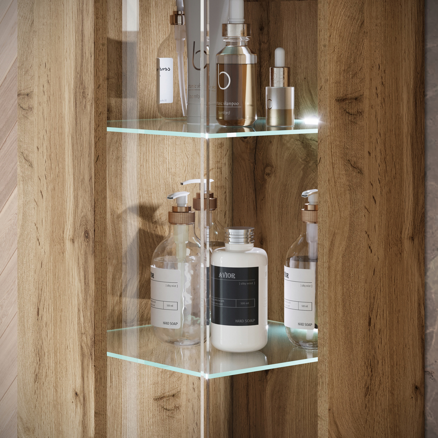 - szklane półki wykonane ze szkła hartowanego o grubości 4mm, krawędzie szlifowan