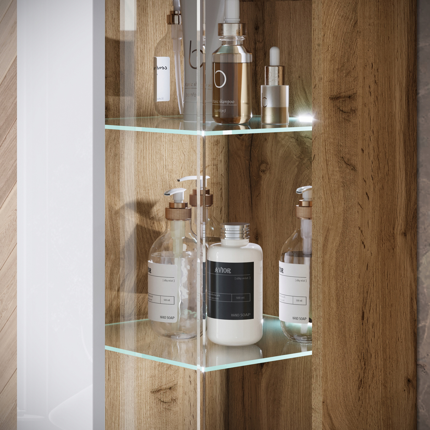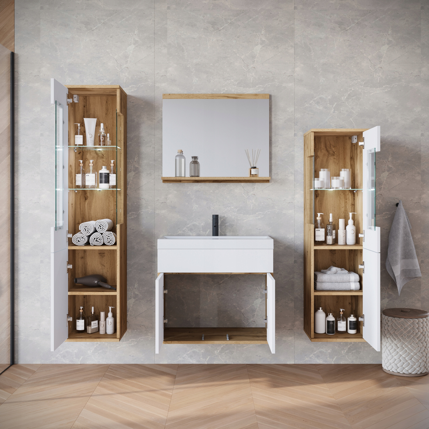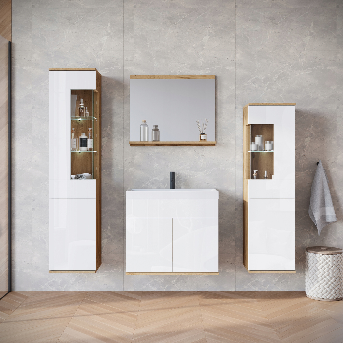 Meble łazienkowe NAIROBI umywalka, lustro DĄB WOTAN / BIAŁY POŁYSK