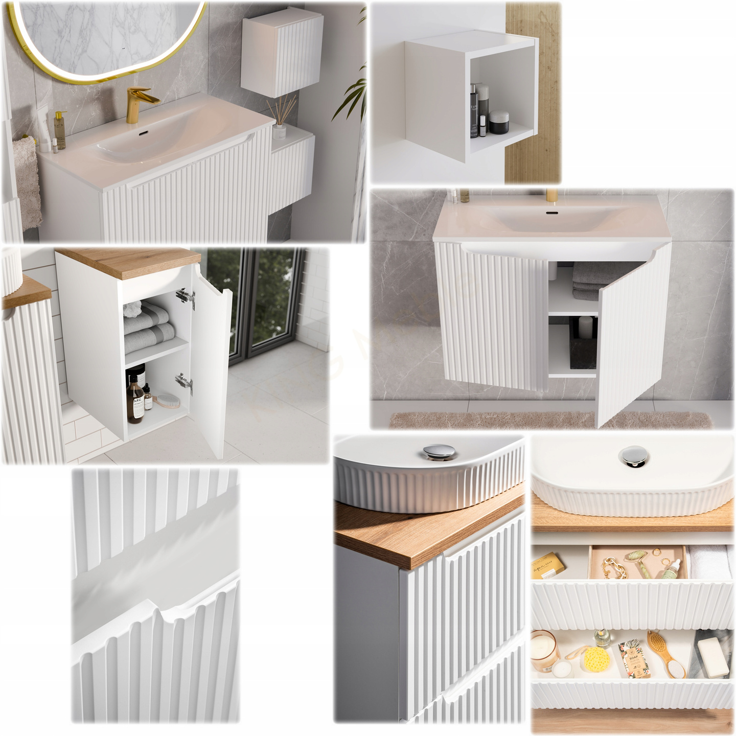 Meble łazienkowe NOVA WHITE 140, 2x Umywalka nablatowa, Biały/Dąb, 3 KOLORY