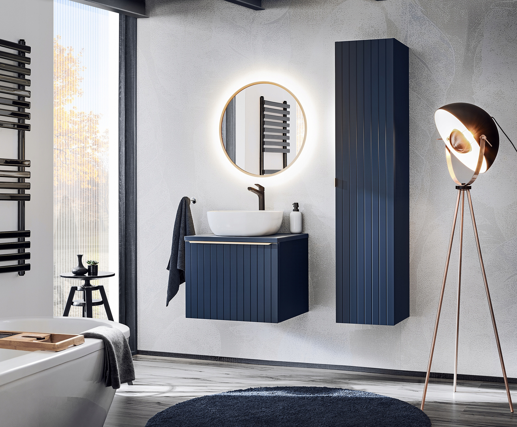 Meble łazienkowe SANTA FE DEEP BLUE 60, Umywalka, Lustro LED, INDIGO