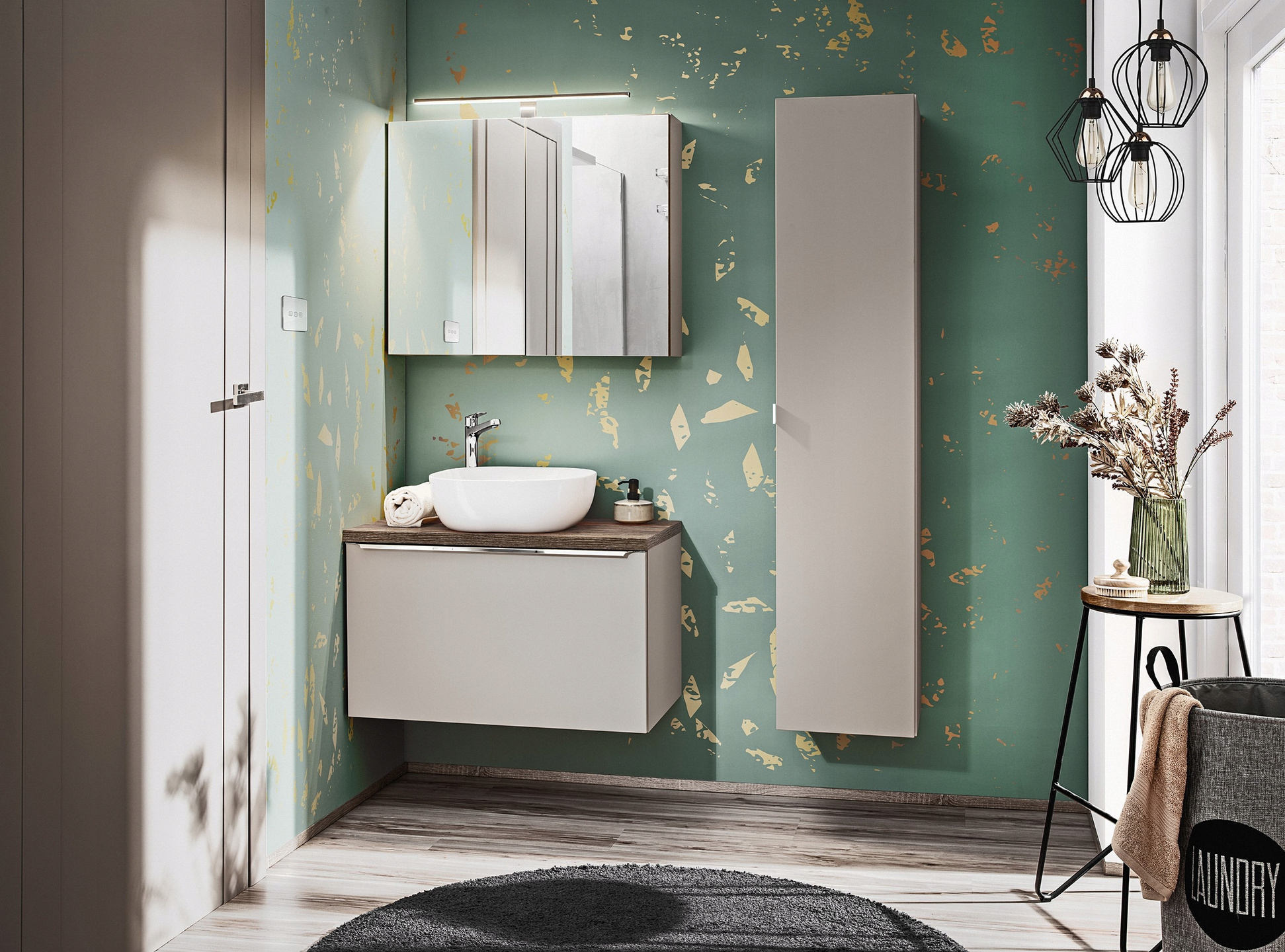 Meble łazienkowe SANTA FE TAUPE 60, Umywalka nablatowa, Szafka z lustrem, Lampka LED