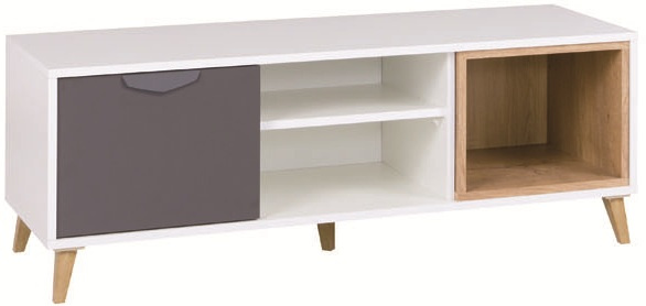 Aukcja dotyczy zestawu pięciu mebli JOKER w kolorze Biały/Grafit/Szary/Dąb Lefkas, skład zestawu: