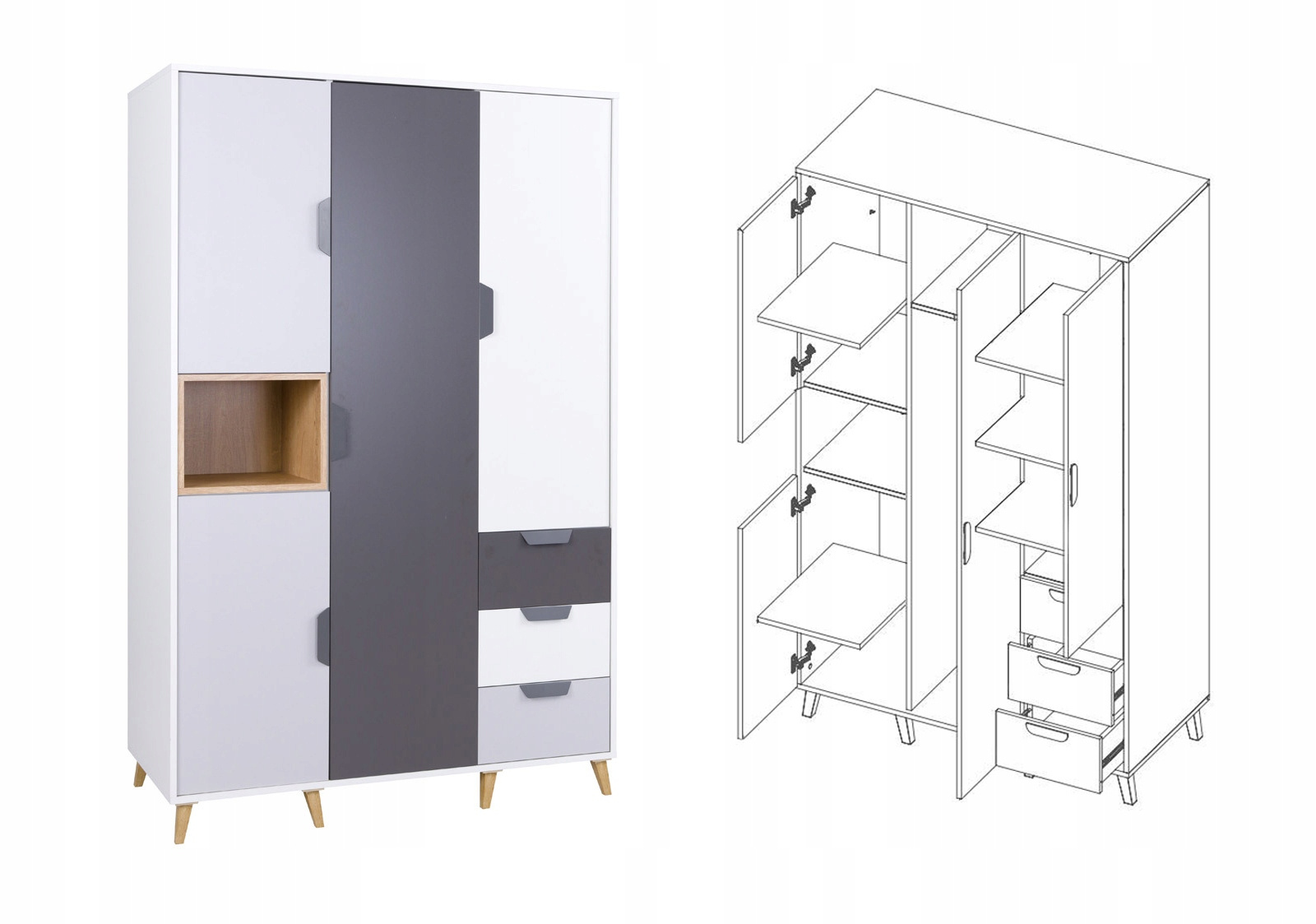 Meble Młodzieżowe JOKER, Zestaw nr 1, Meble do Salonu Kolor mebla biały dąb lefkas grafit odcienie szarości szary
