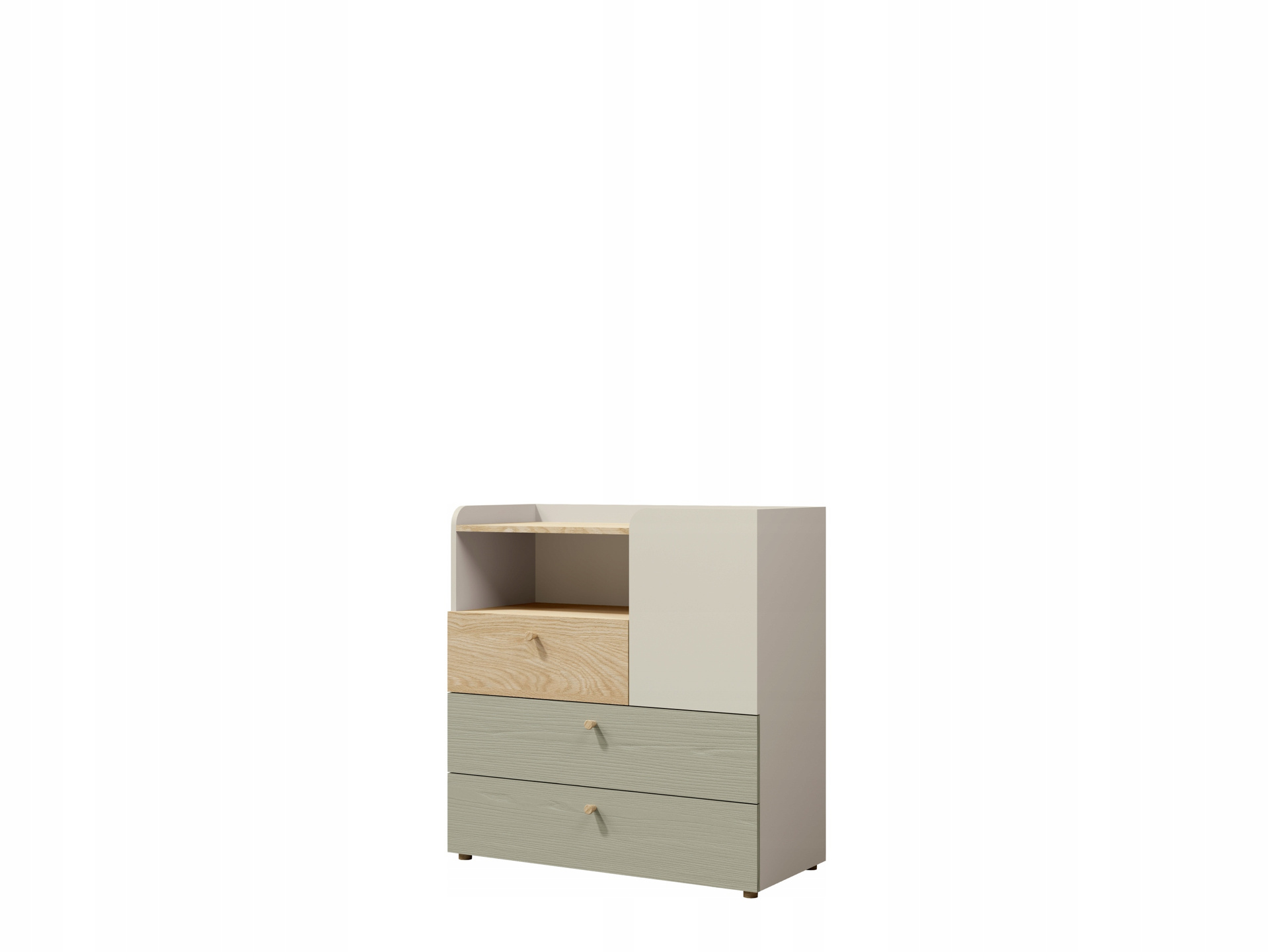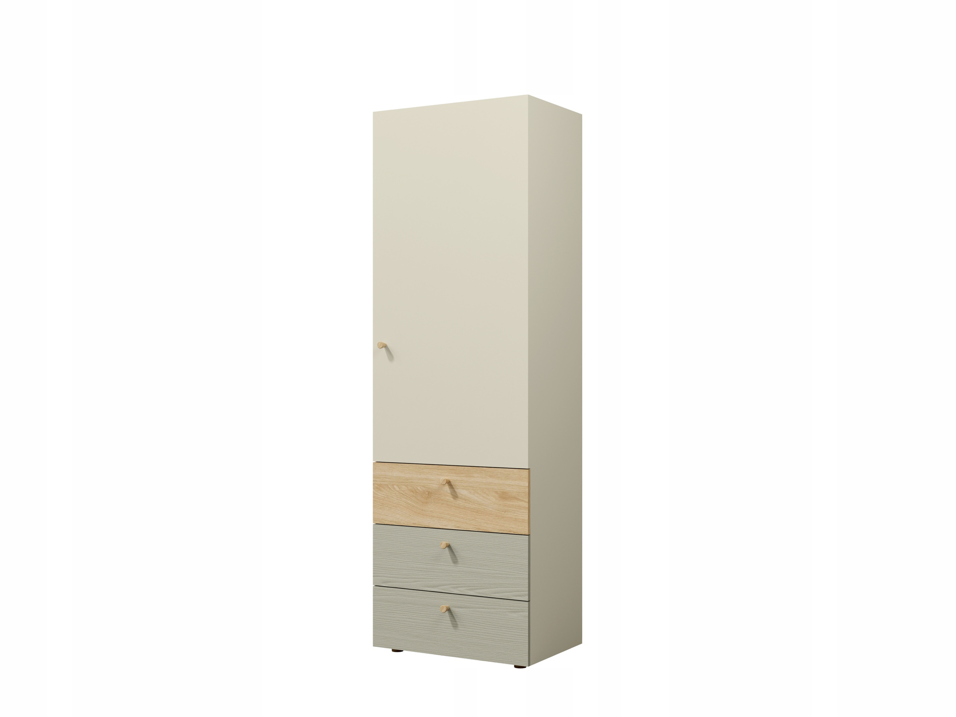 Aukcja dotyczy zestawu siedmiu mebli YUKI w kolorze Szarobeżowy/Dąb Olejowany/Eukaliptus: