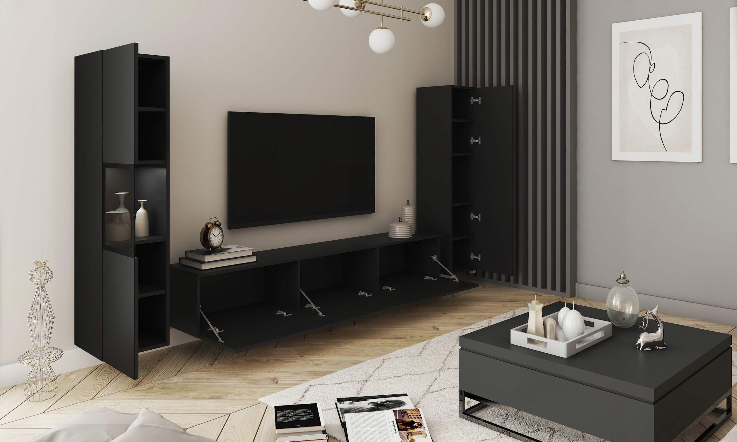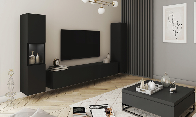 Meblościanka BERLIN III Zestaw Mebli, Salon Czarny Grafit