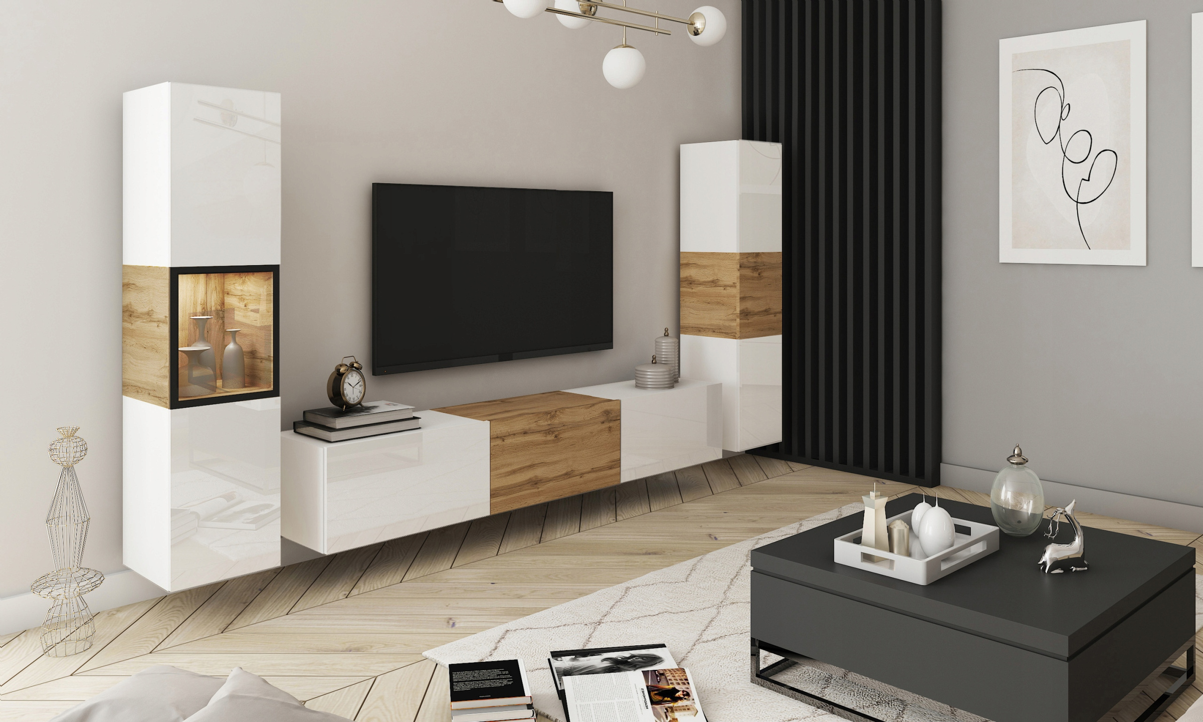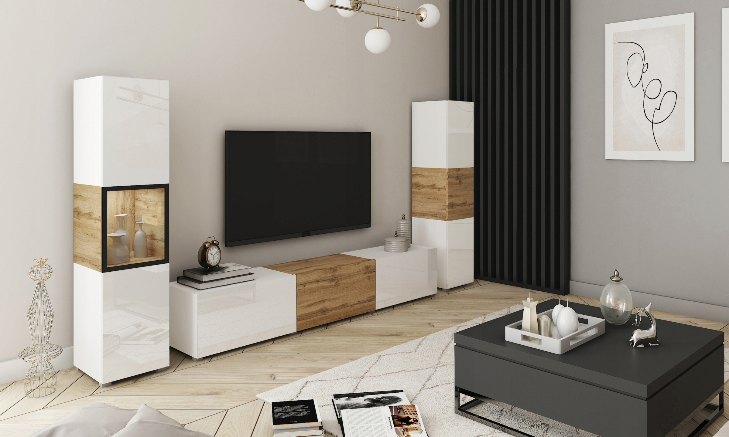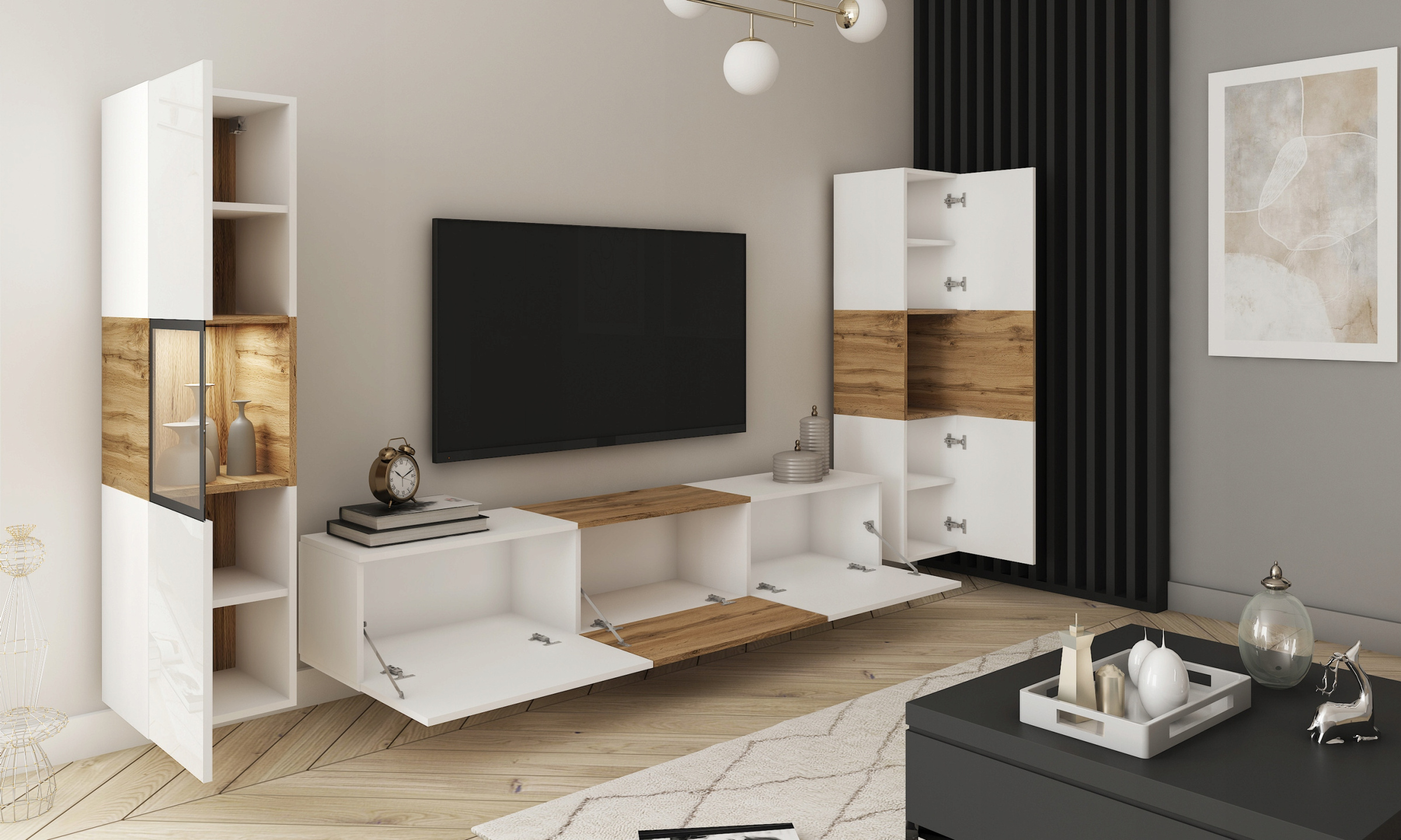 Meblościanka BERLIN III Zestaw Mebli, Salon Dąb Wotan / Biały Połysk