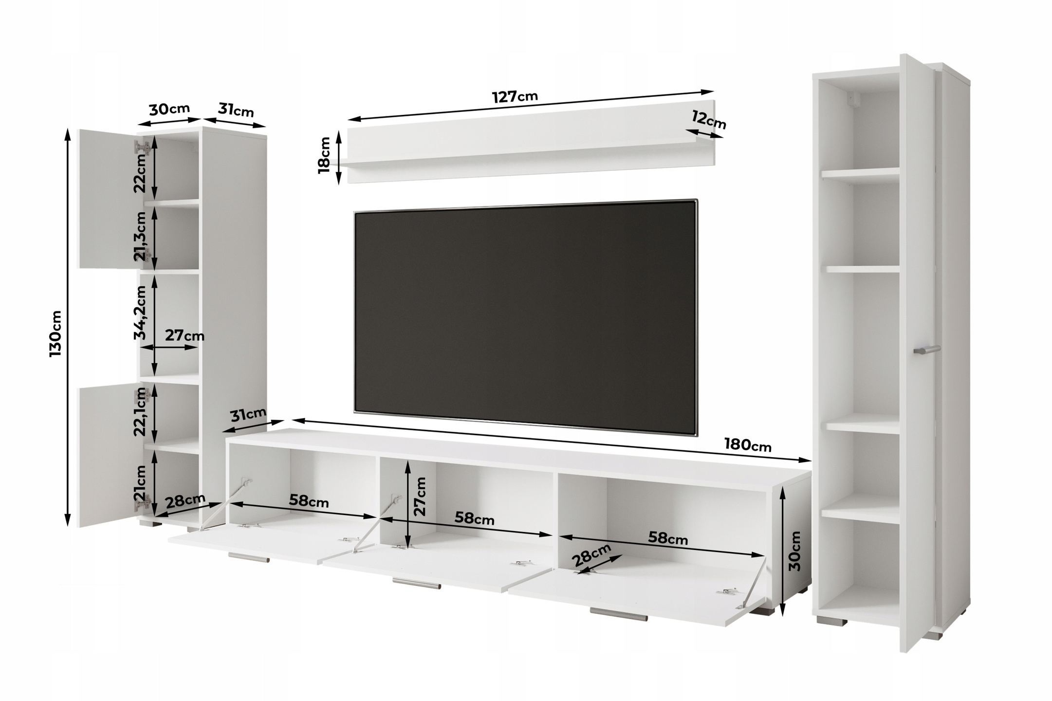 Meblościanka BOGOTA Zestaw mebli, salon Biały / Biały Połysk