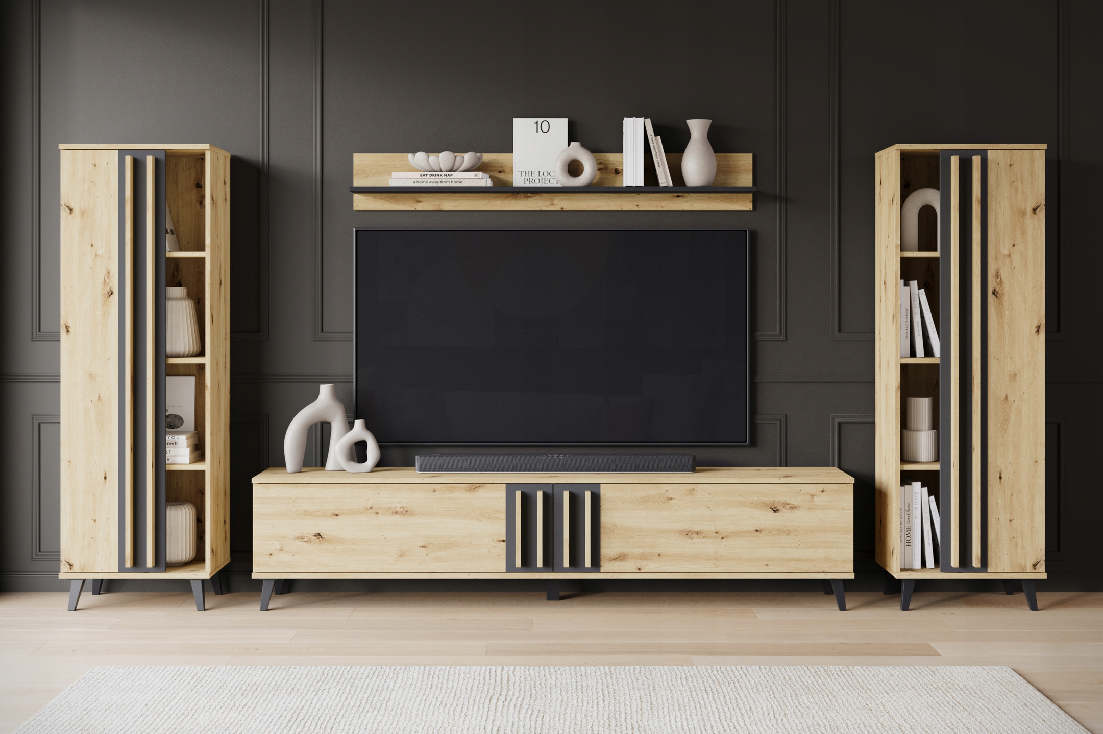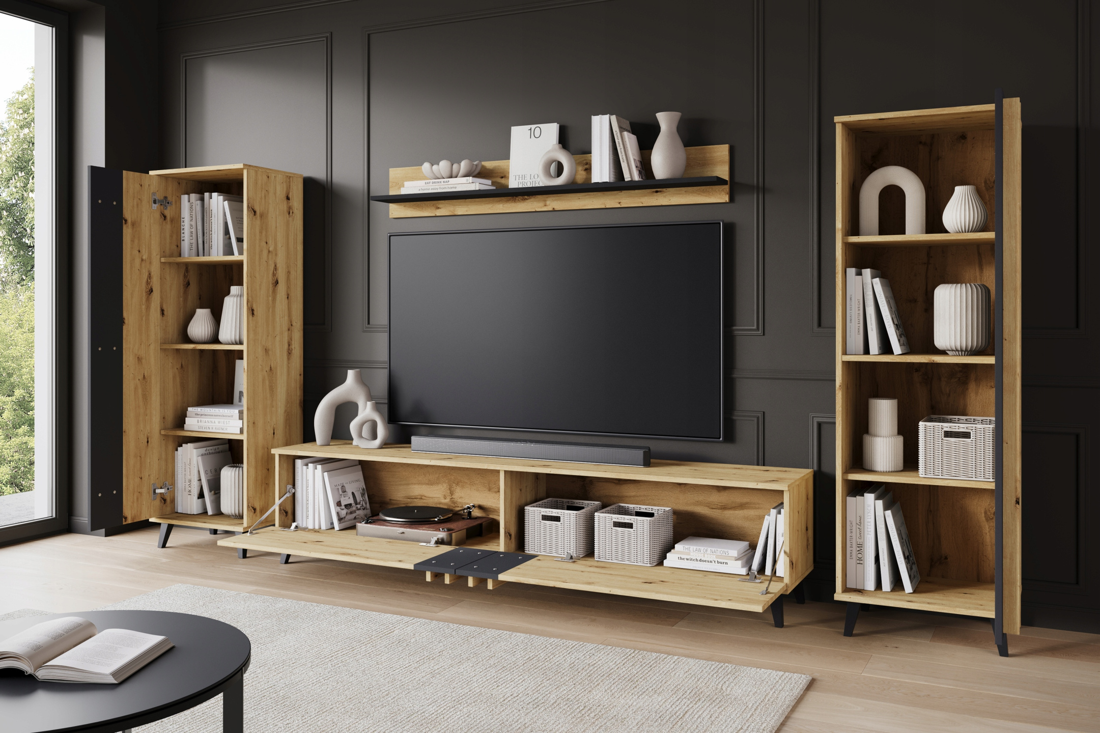 Meblościanka HELSINKI I Zestaw mebli, salon, Dąb Artisan / Czarny Grafit