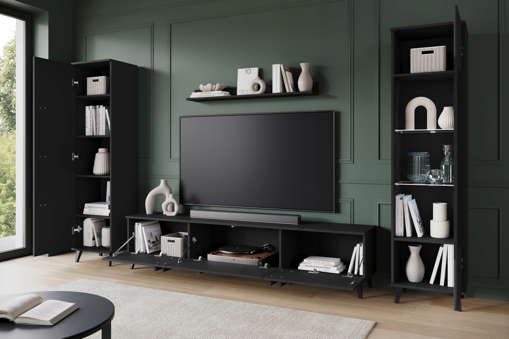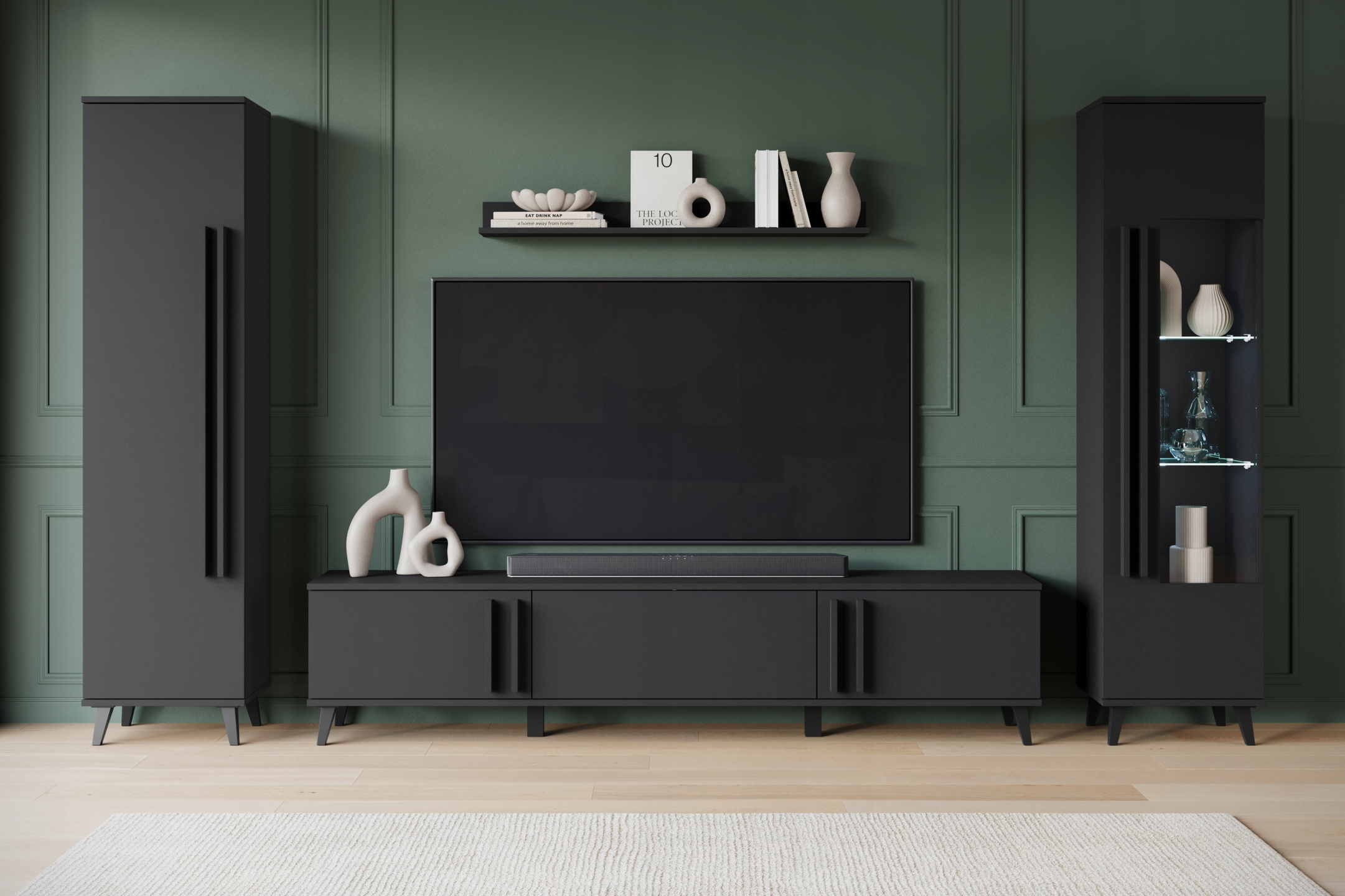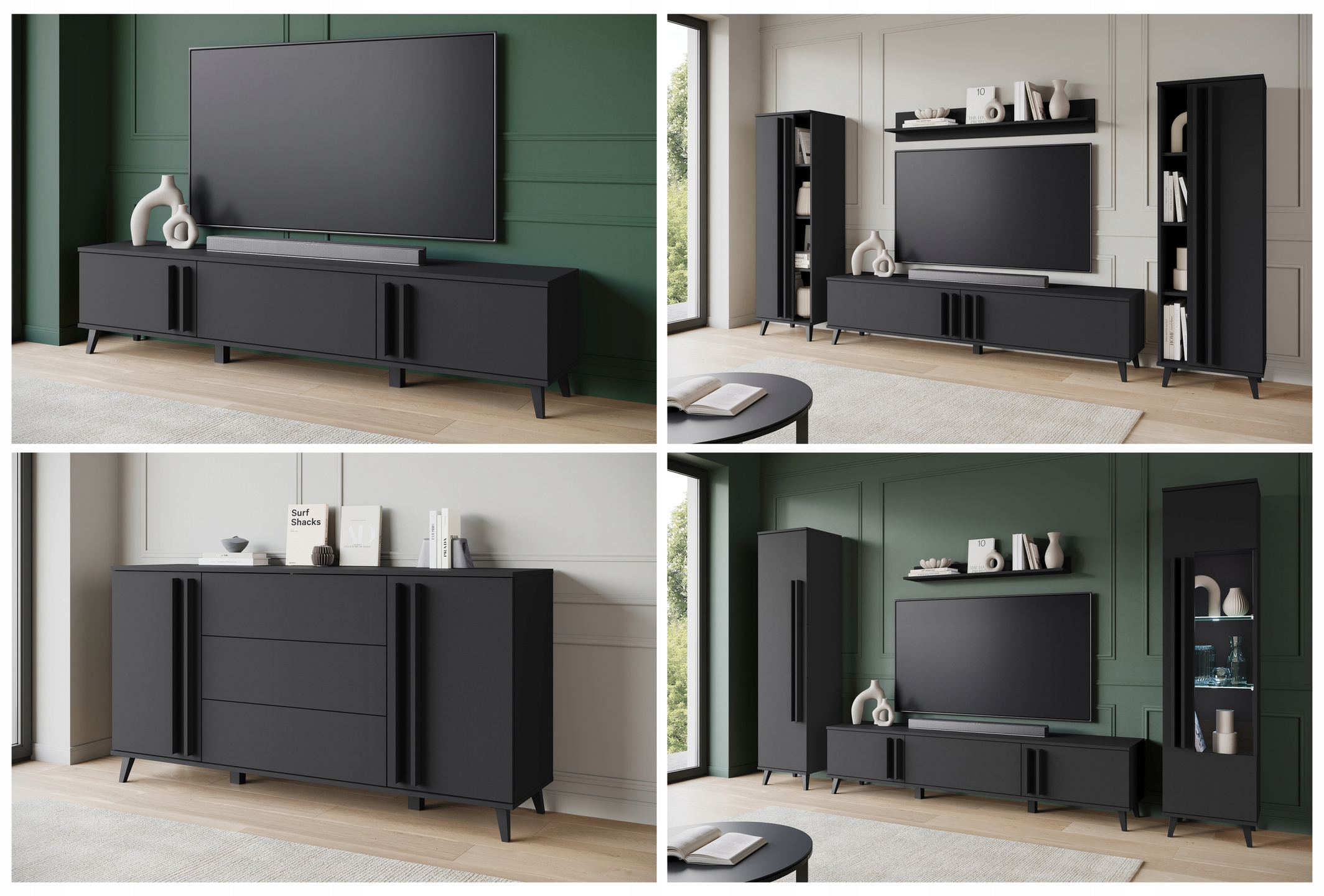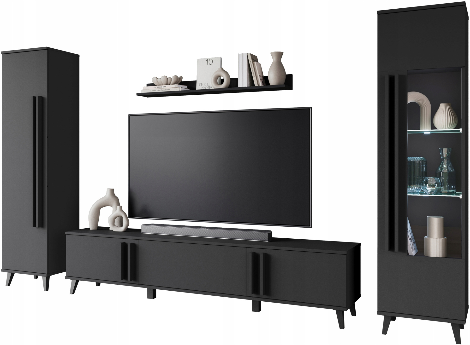 Meblościanka HELSINKI II Zestaw mebli, salon, Czarny Grafit