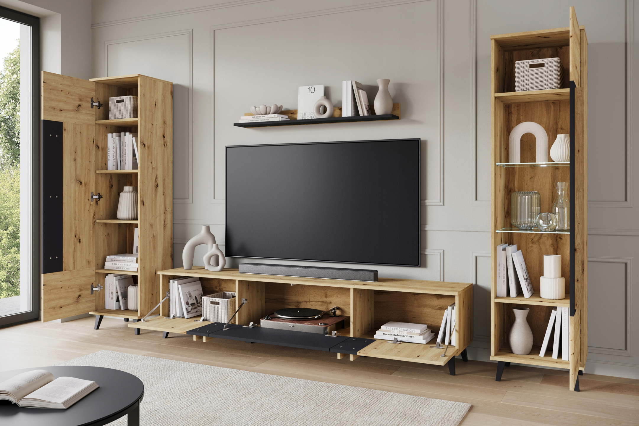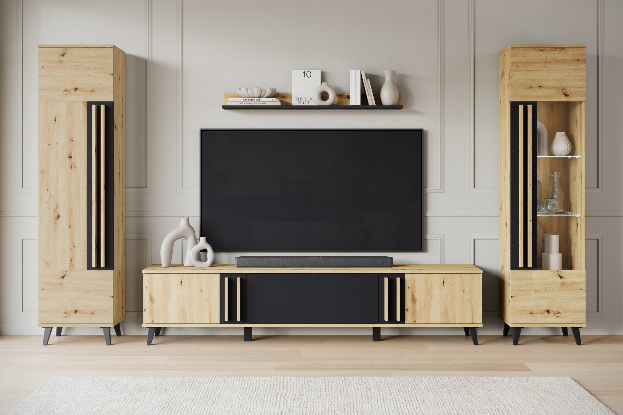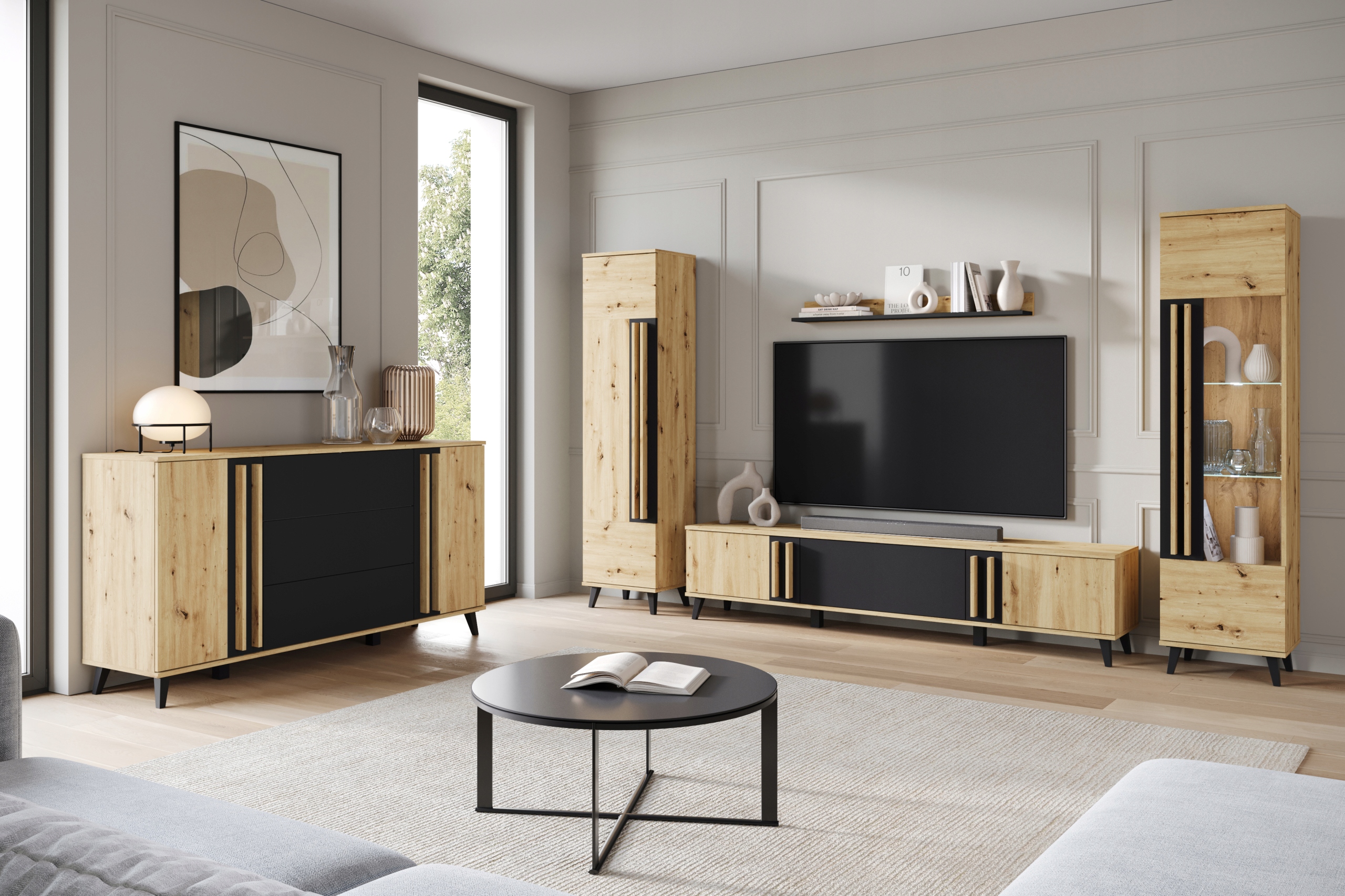 Meblościanka HELSINKI II Zestaw mebli, salon, Dąb Artisan / Czarny Grafit