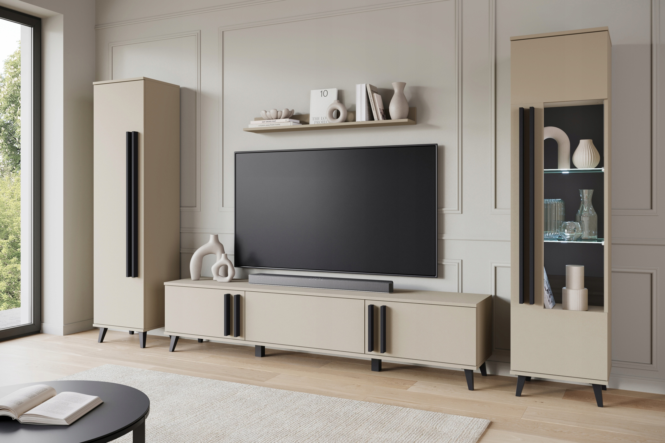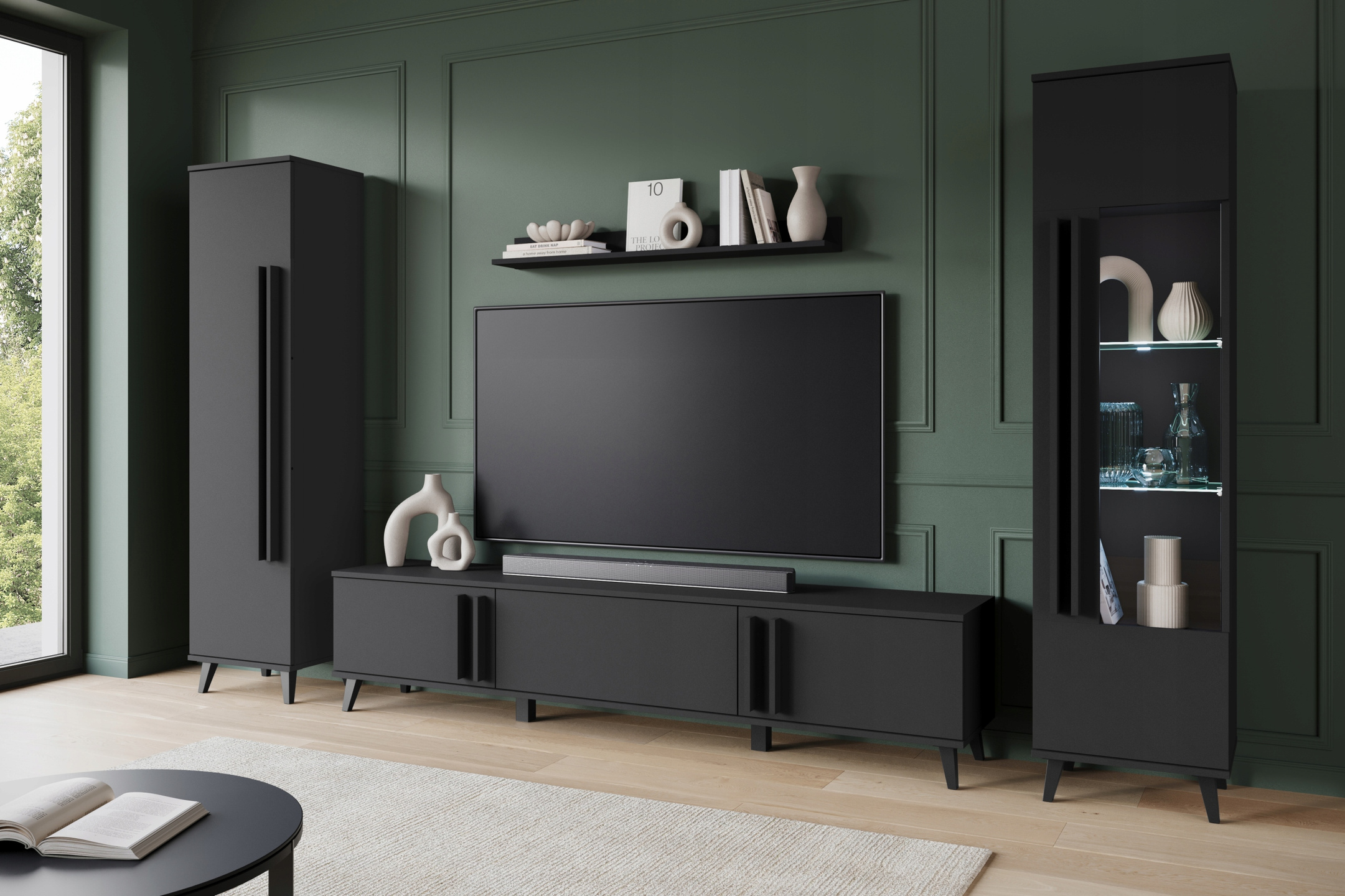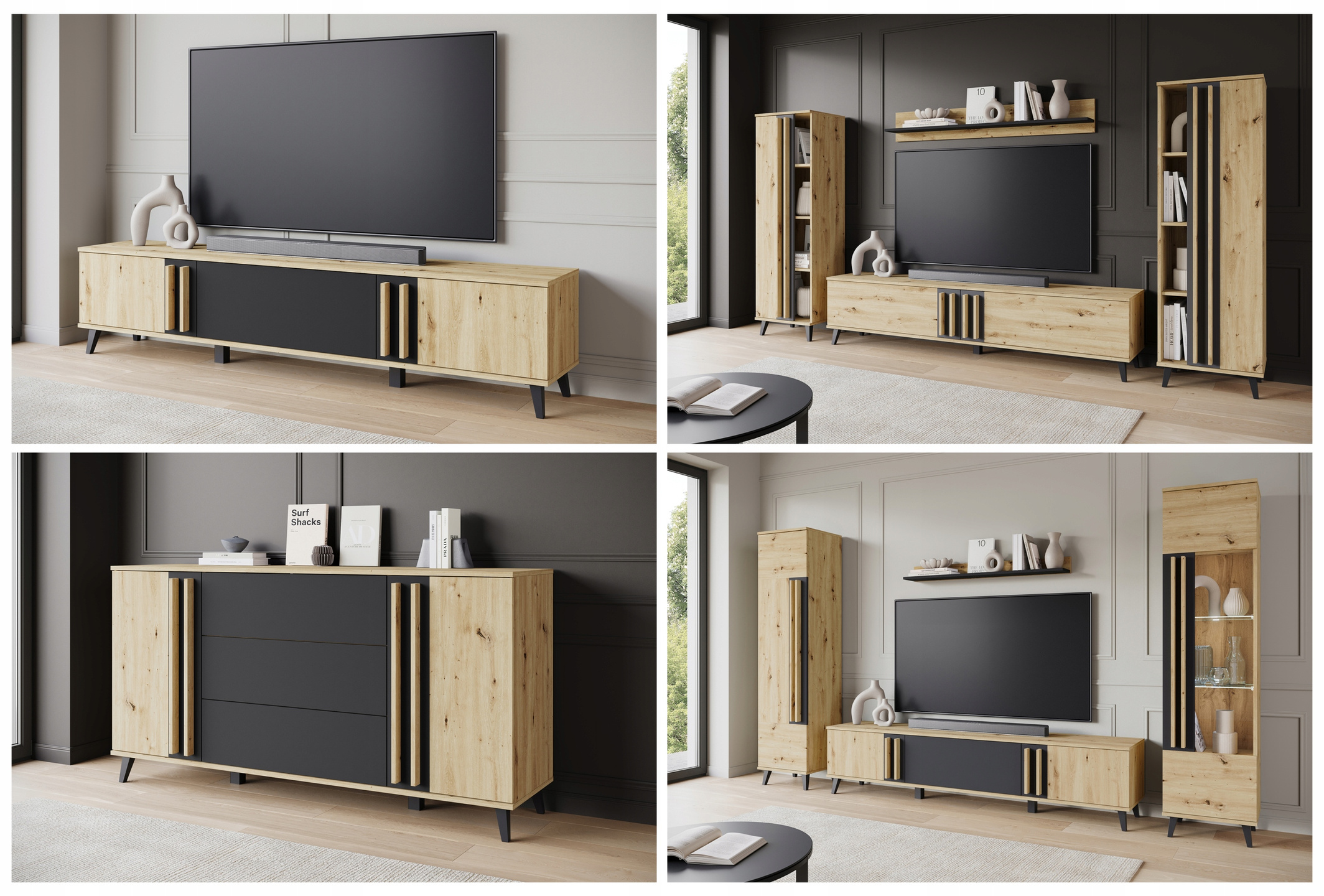Meblościanka HELSINKI II Zestaw mebli, salon, Dąb Artisan / Czarny Grafit