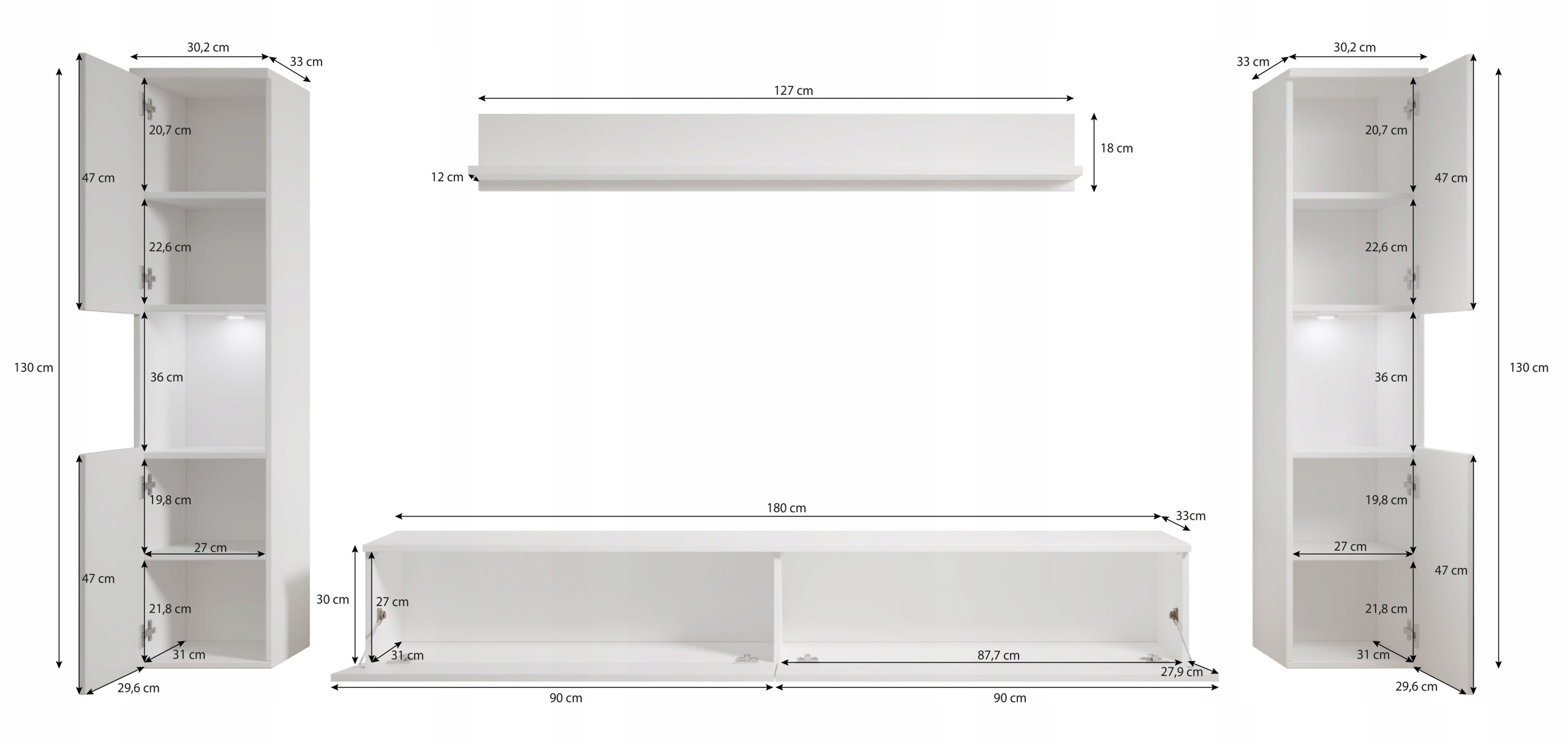 - możliwość zamontowania szafek w wersji stojącej lub wiszącej