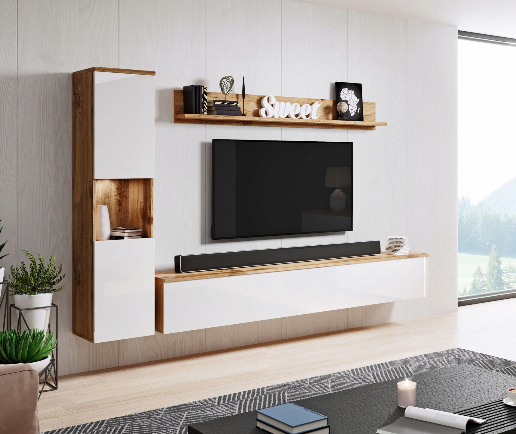 Meble można podświetlić oświetleniem LED co jeszcze bardziej uatrakcyjni szafkę i stworzy idealny klimat w pomieszczeniu.