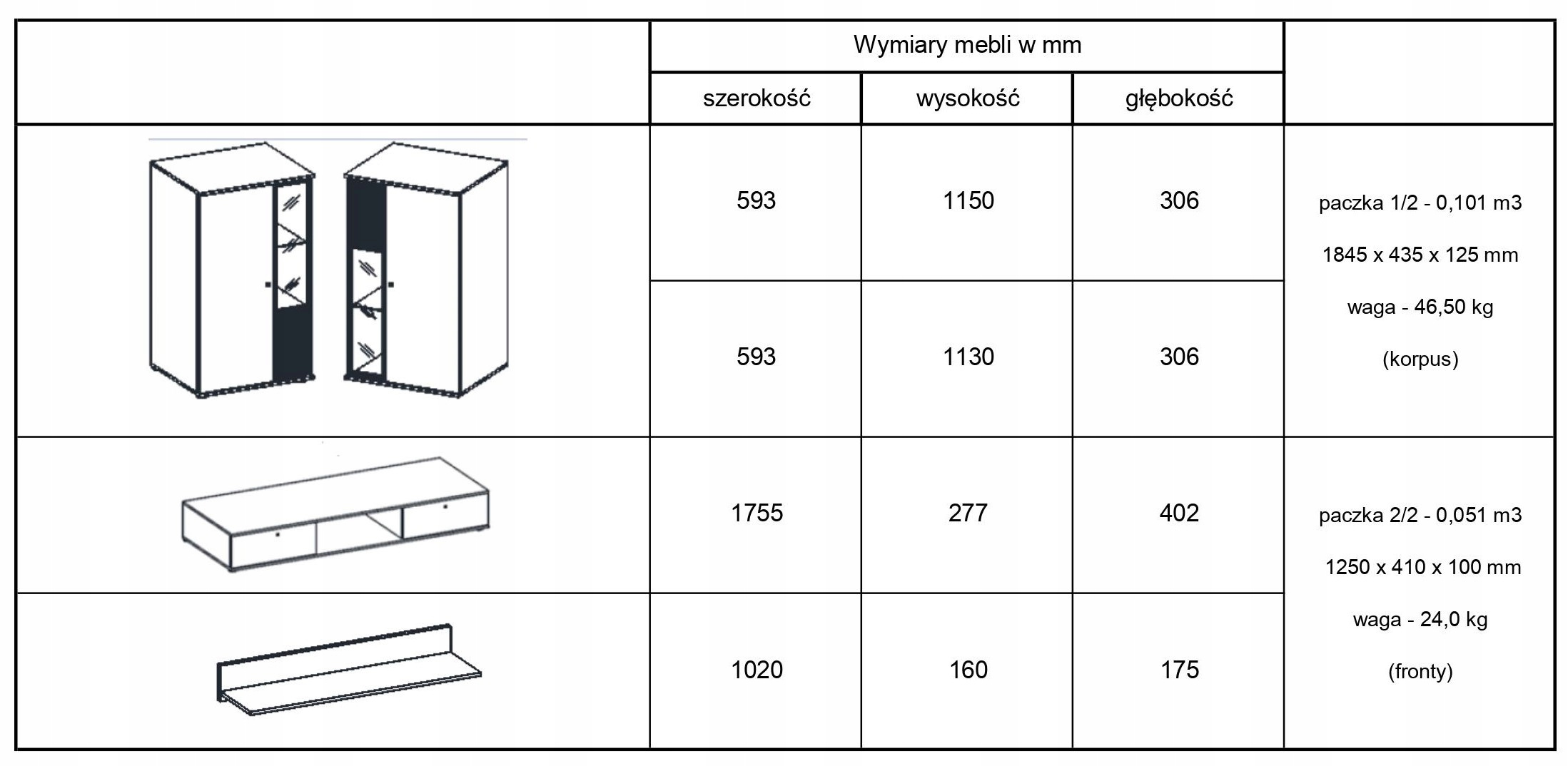 - do mebli dołączona instrukcja montażu oraz wszystkie akcesoria