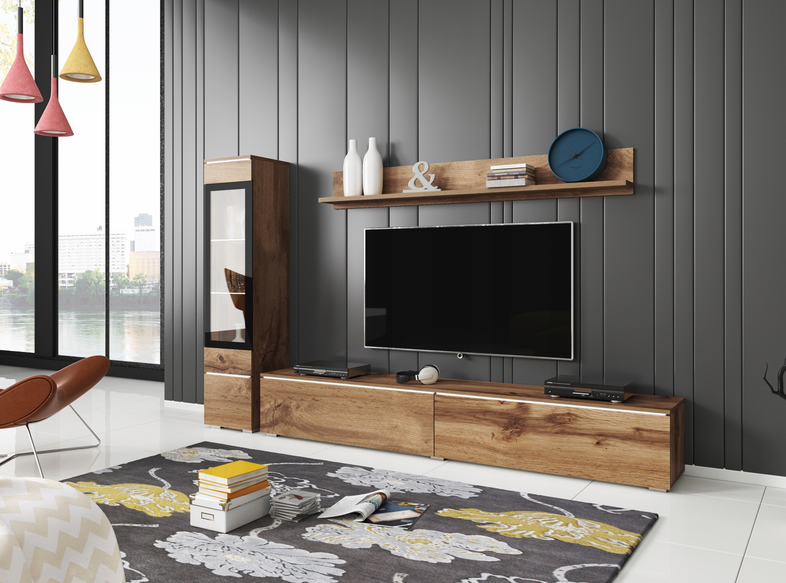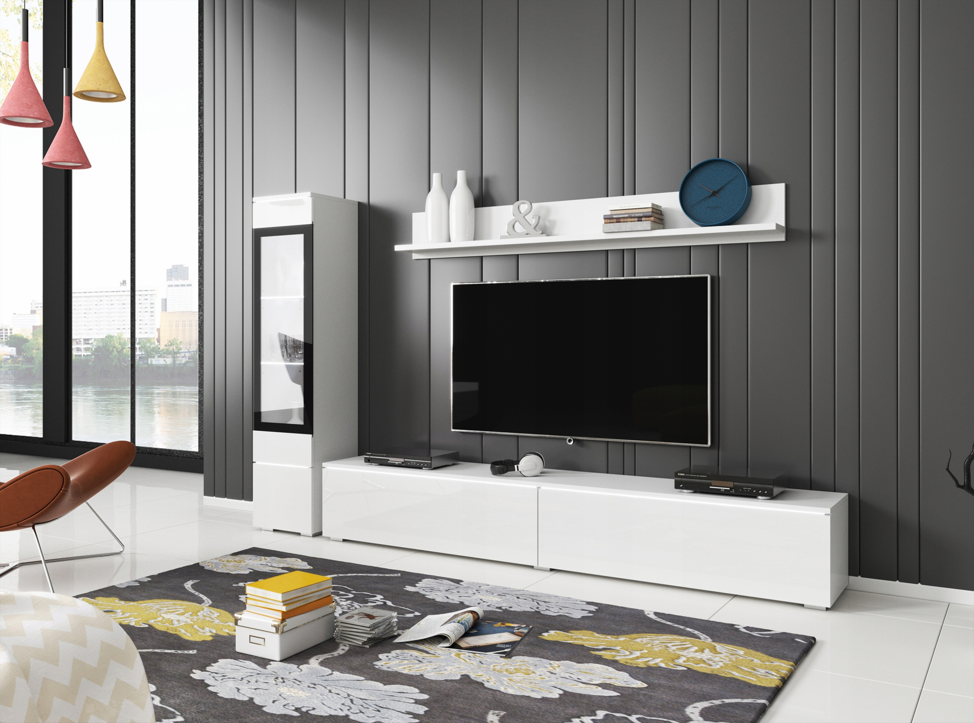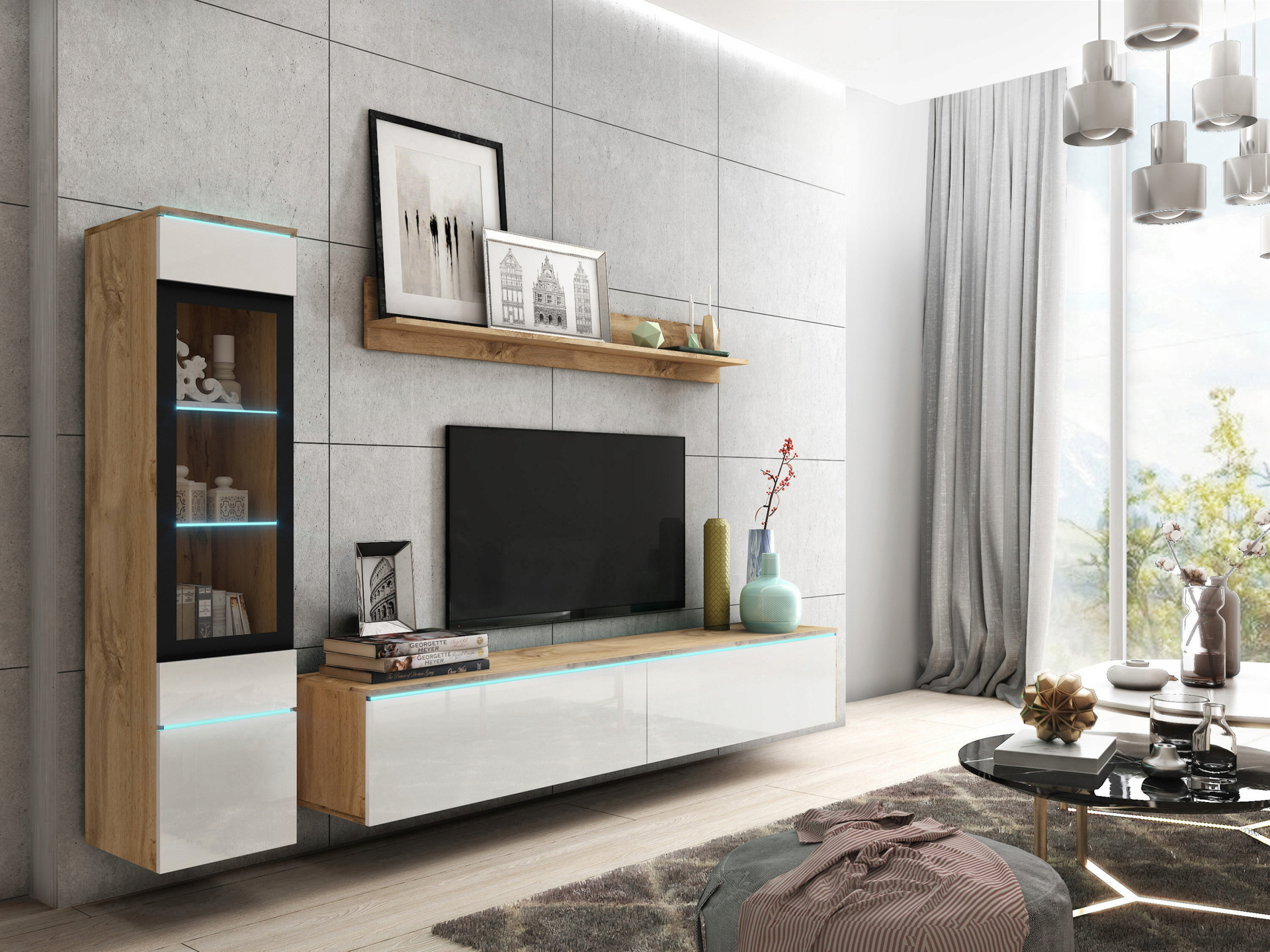 Szklane elementy można podświetlić oświetleniem LED co jeszcze bardziej uatrakcyjni szafkę i stworzy idealny klimat w pomieszczeniu.