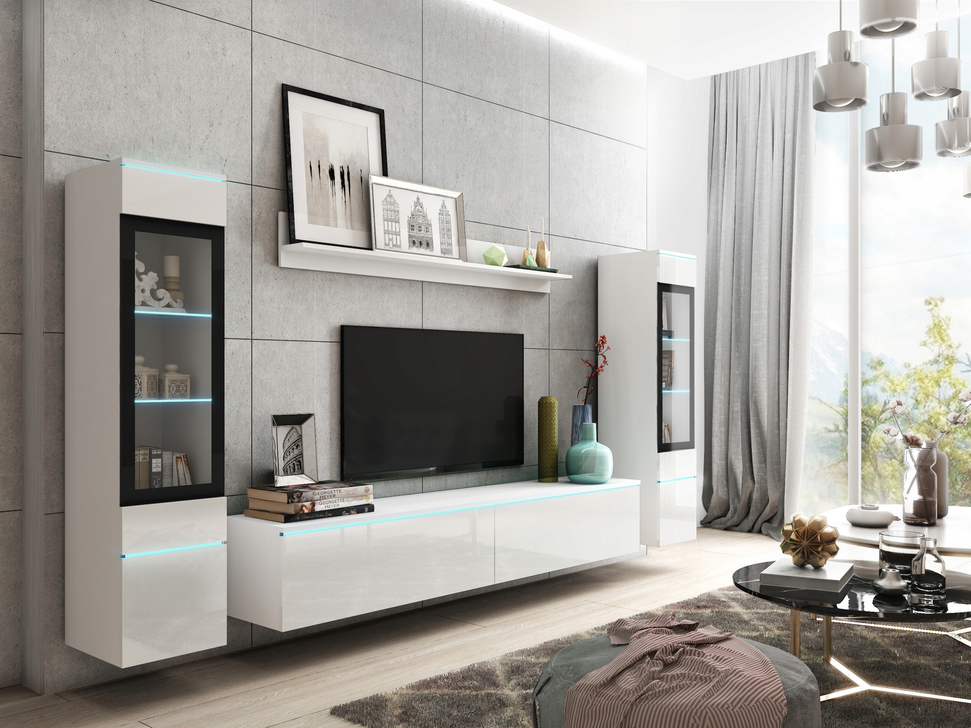 Szklane elementy można podświetlić oświetleniem LED co jeszcze bardziej uatrakcyjni szafkę i stworzy idealny klimat w pomieszczeniu.