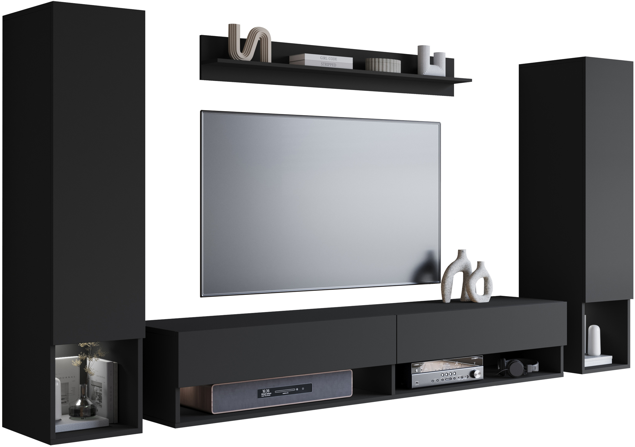 Meblościanka, Zestaw Mebli AMADEO II salon Czarny Grafit
