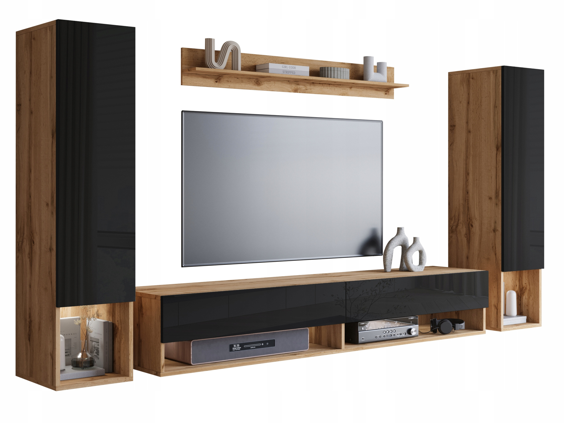 Meblościanka Amadeo II Dąb Wotan/Czarny Połysk: