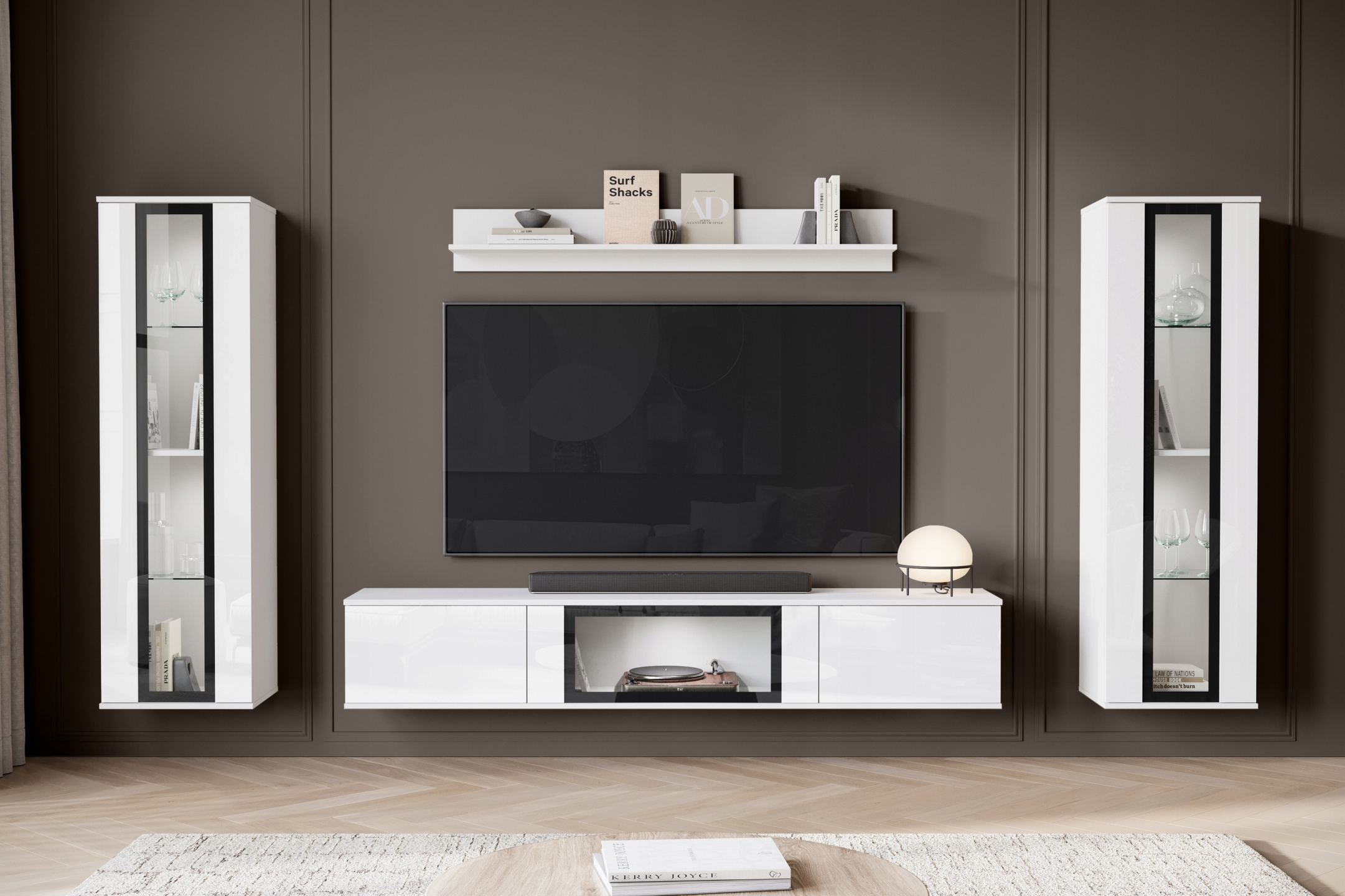 Szklane elementy można podświetlić oświetleniem LED co jeszcze bardziej uatrakcyjni mebel i stworzy idealny klimat w pomieszczeniu.