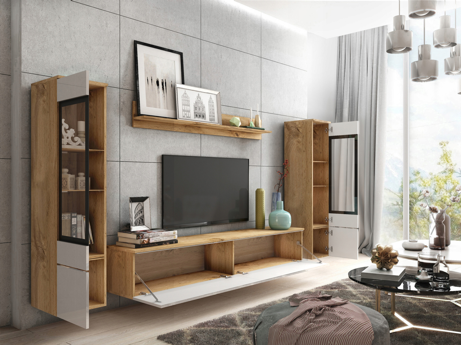 Meblościanka Zestaw mebli VERA II salon Dąb Wotan / Biały Połysk