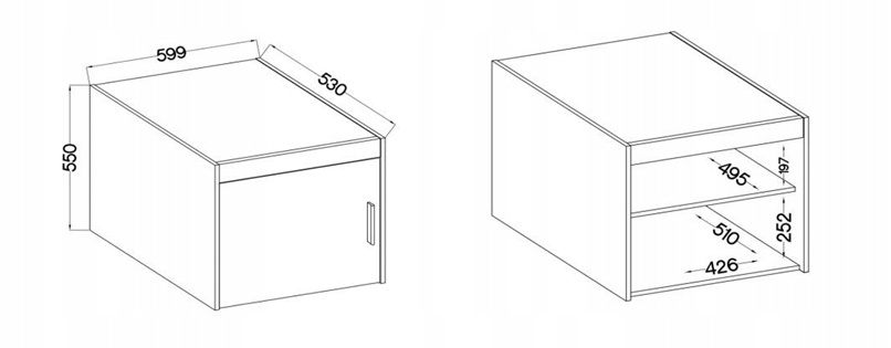 - wymiary: 599 x 550 x 530mm (szer. x wys. x gł.)