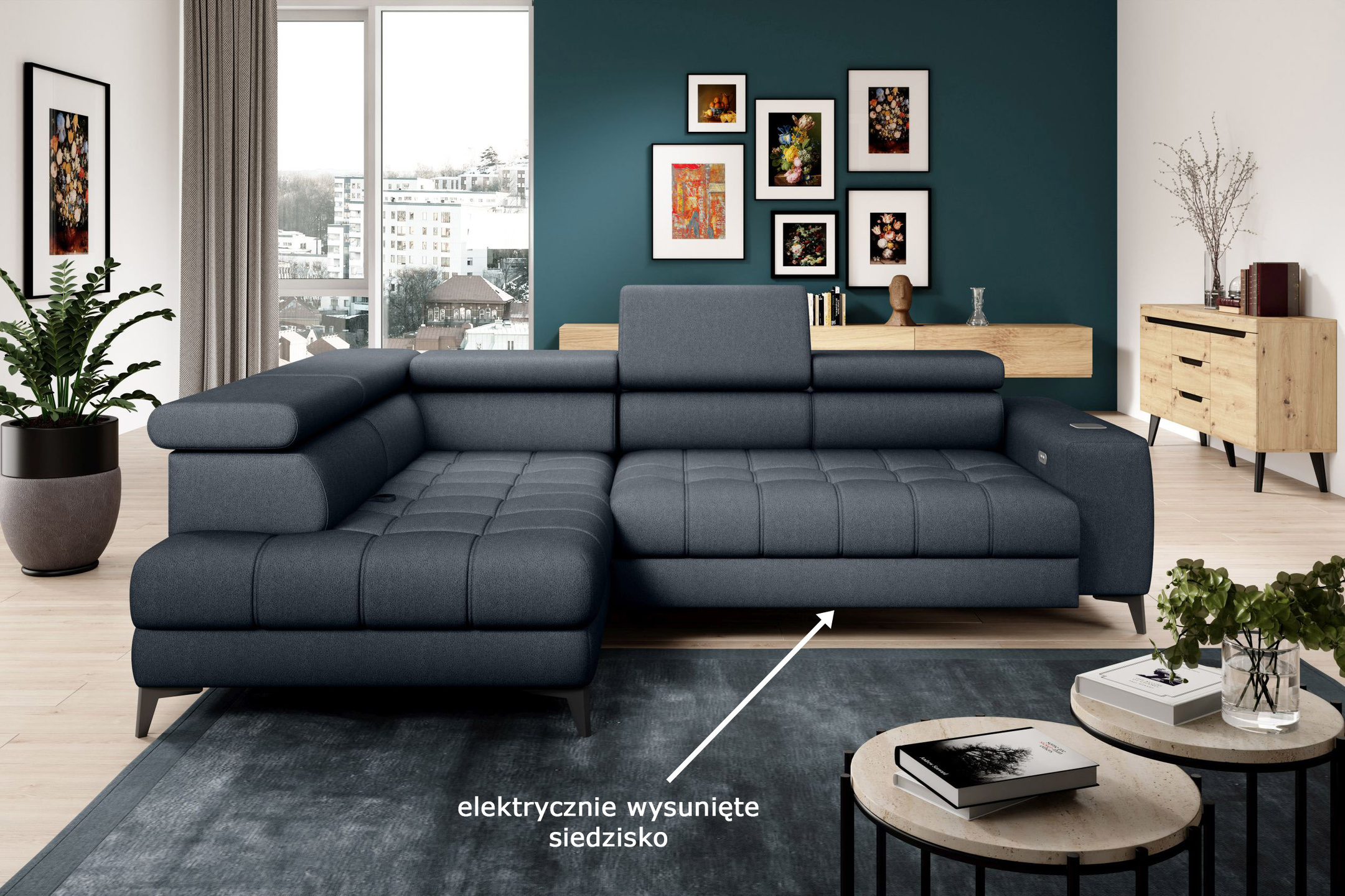 Narożnik BAGGIO 280 cm, Elektryczny wysuw siedziska, Zagłówki