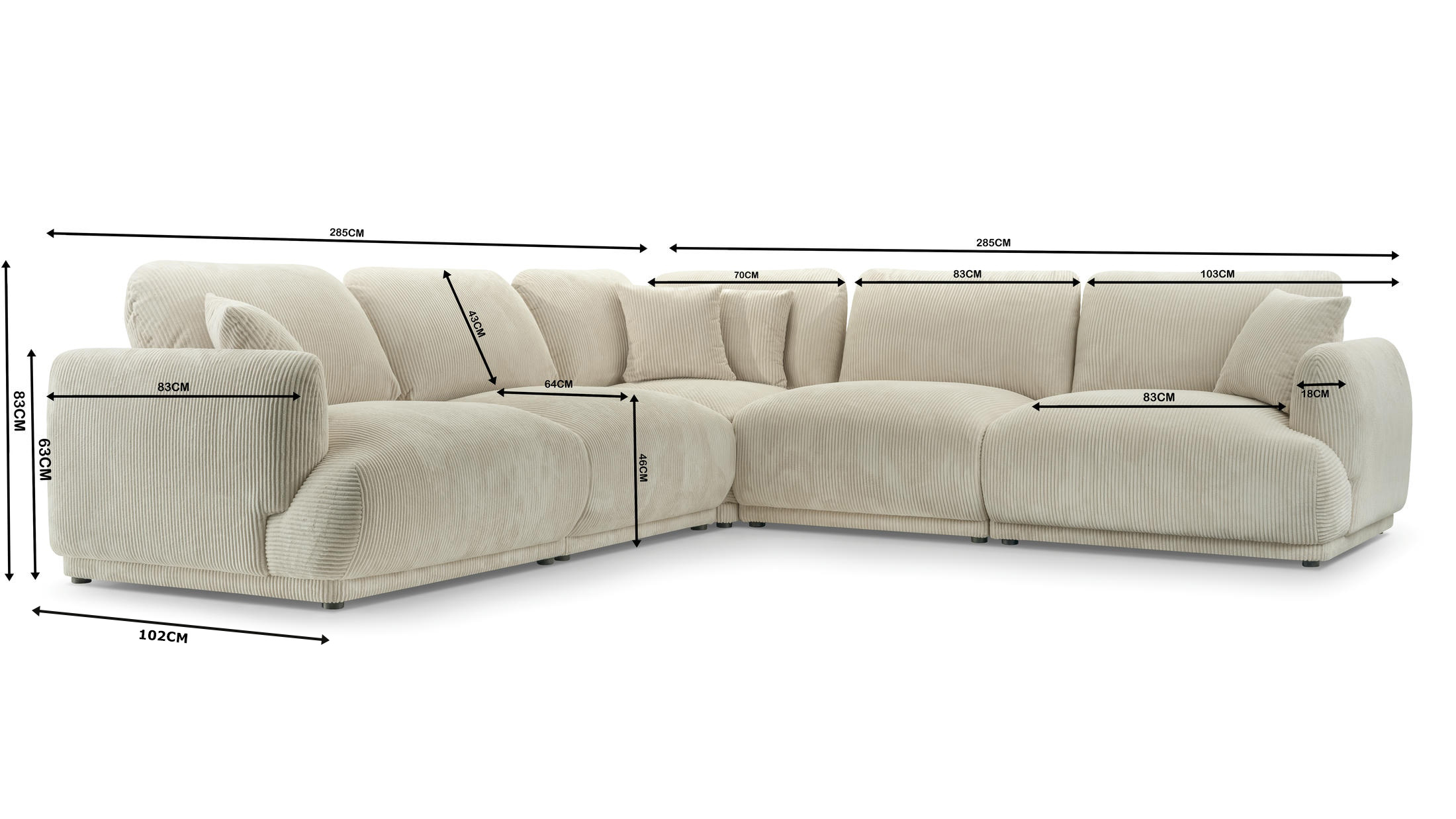• tył narożnika obity w tkaninie, więc spokojnie może stać na środku pokoju
