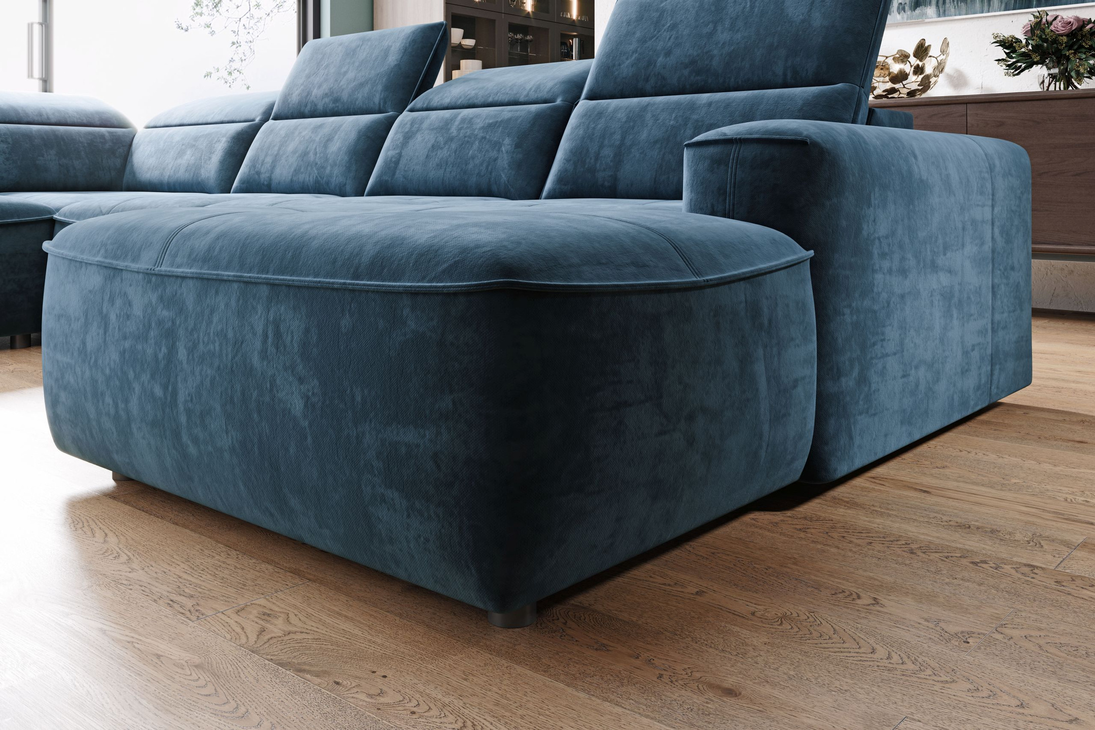 - Kolekcja zaprojektowana zgodnie z najnowszymi trendami z wykorzystaniem technologii i materiałów najwyższej jakości. Regulowane zagłówki oraz oparcia o bardziej komfortowym kącie nachylenia. Kolejnym atutem jest ukryty w otomanie pojemnik.