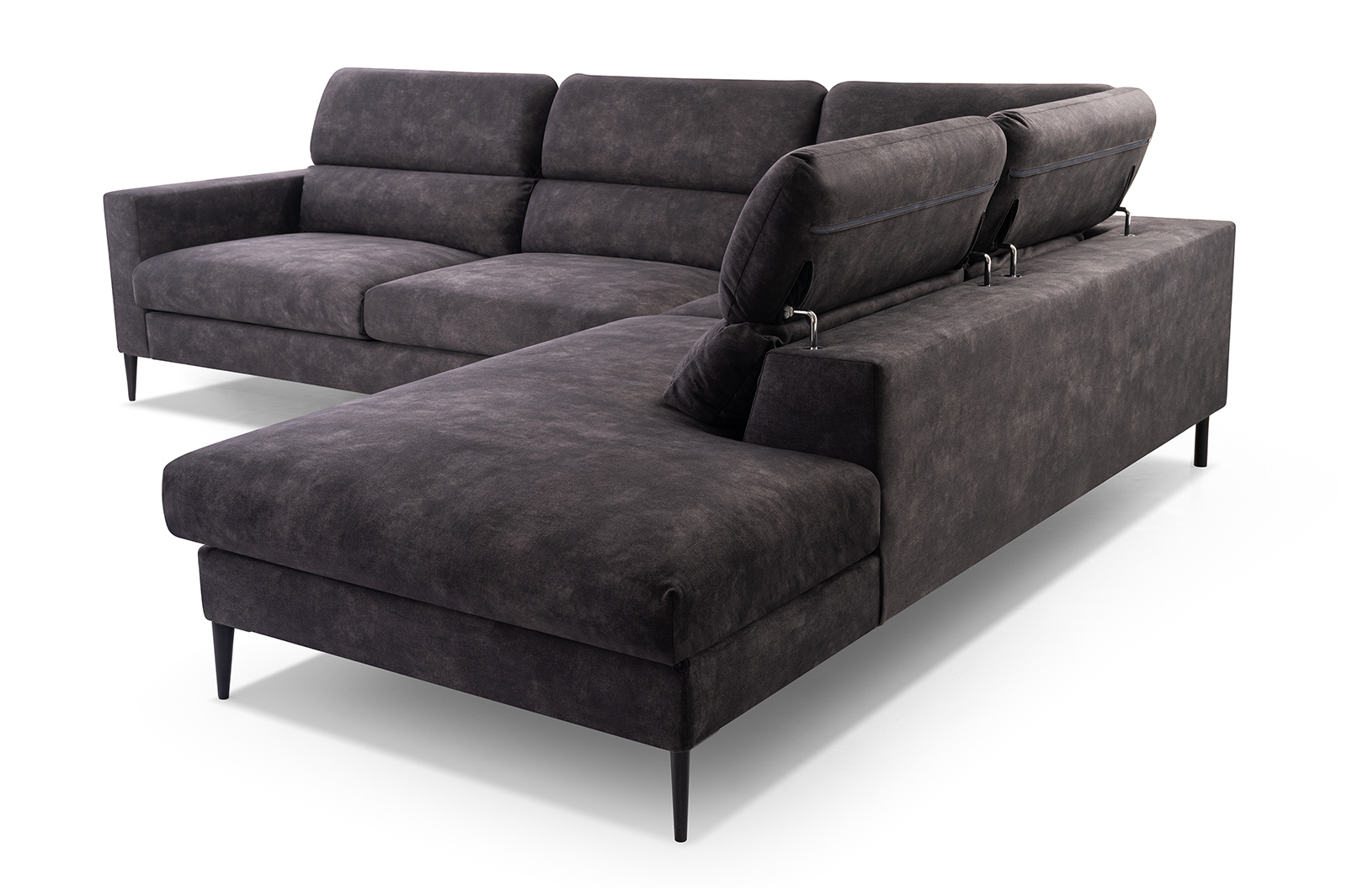 tył obity w tkaninie, więc narożnik spokojnie może stać na środku pokoju