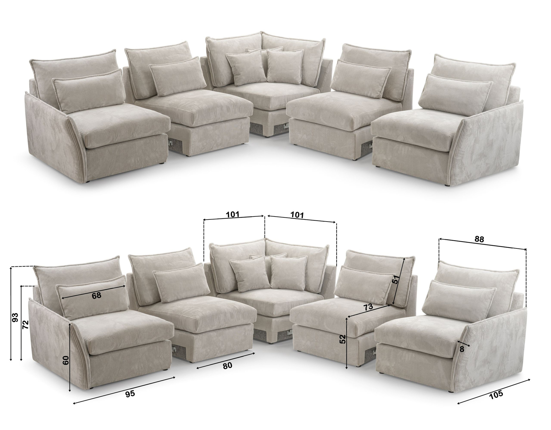 narożnik modułowy, można dokupić moduły i powiększyć mebel lub można z mebla zrobić np. sofę (przykładowe warianty pokazane są w galerii zdjęć)