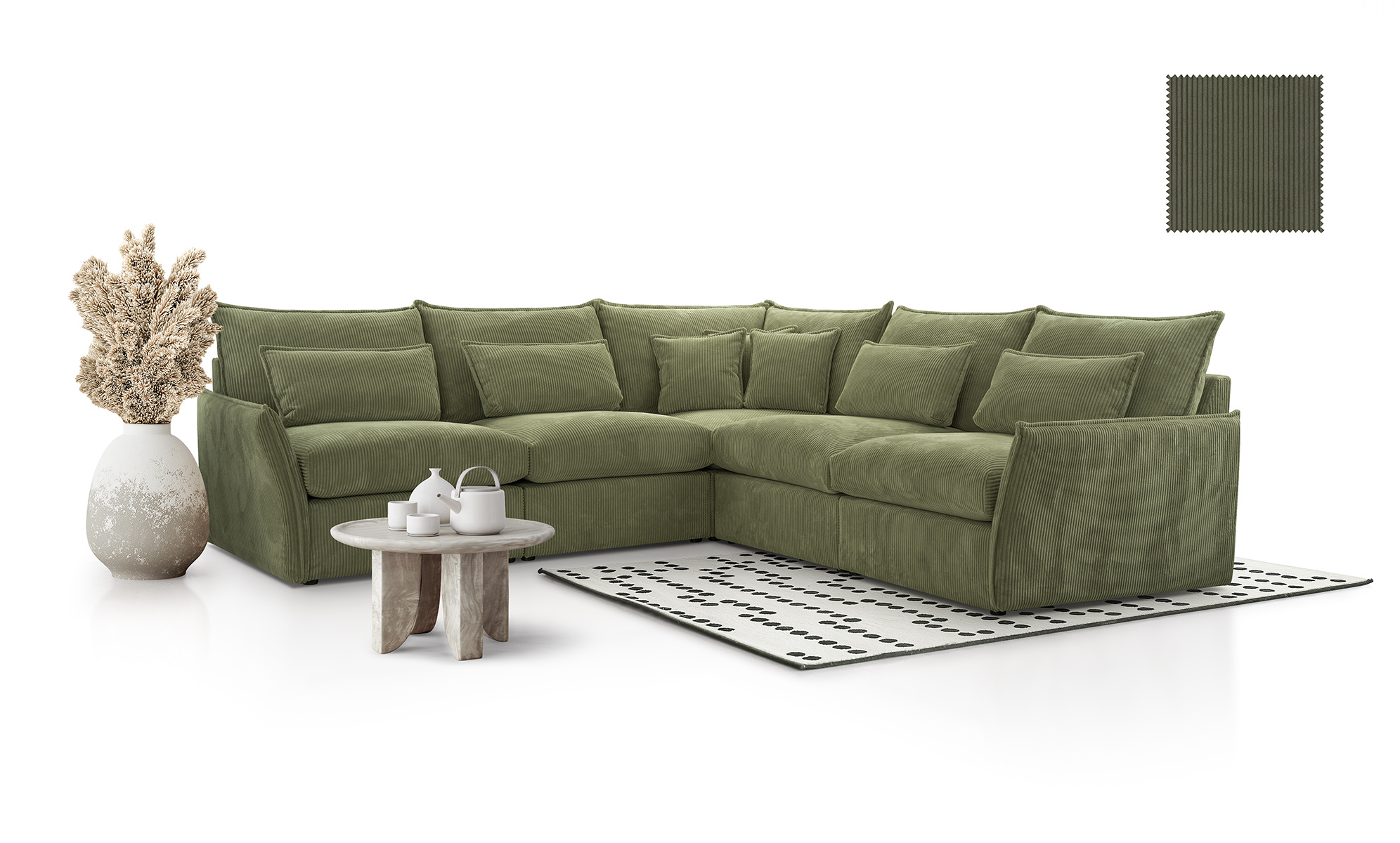 tył narożnika obity w tkaninie, więc spokojnie może stać na środku pokoju