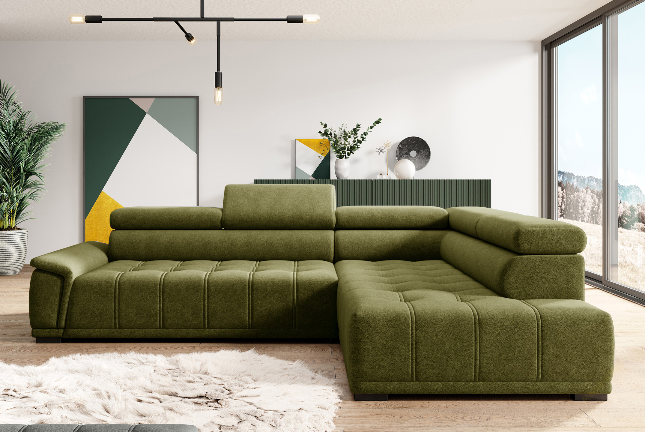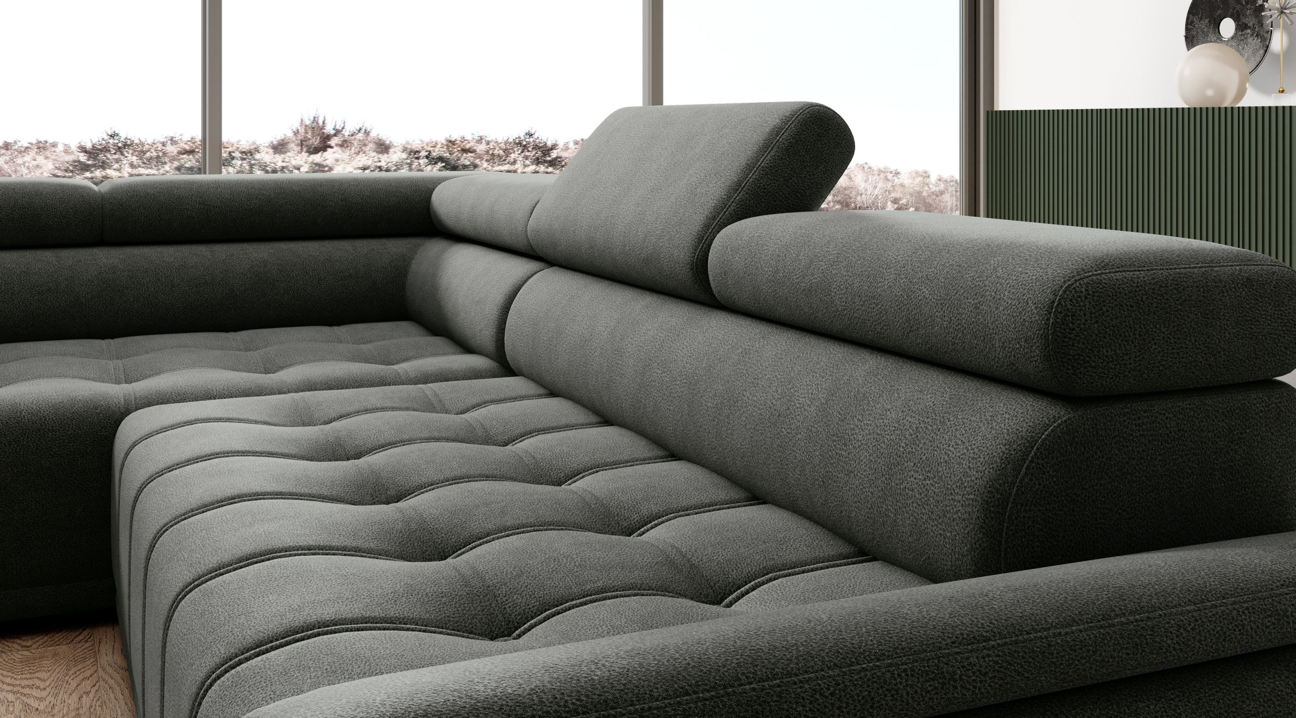 - narożnik nie posiada typowej funkcji spania, ale po wysunięciu siedziska spokojnie wyśpi się jedna osoba (elektrycznie wysuwane siedzisko)