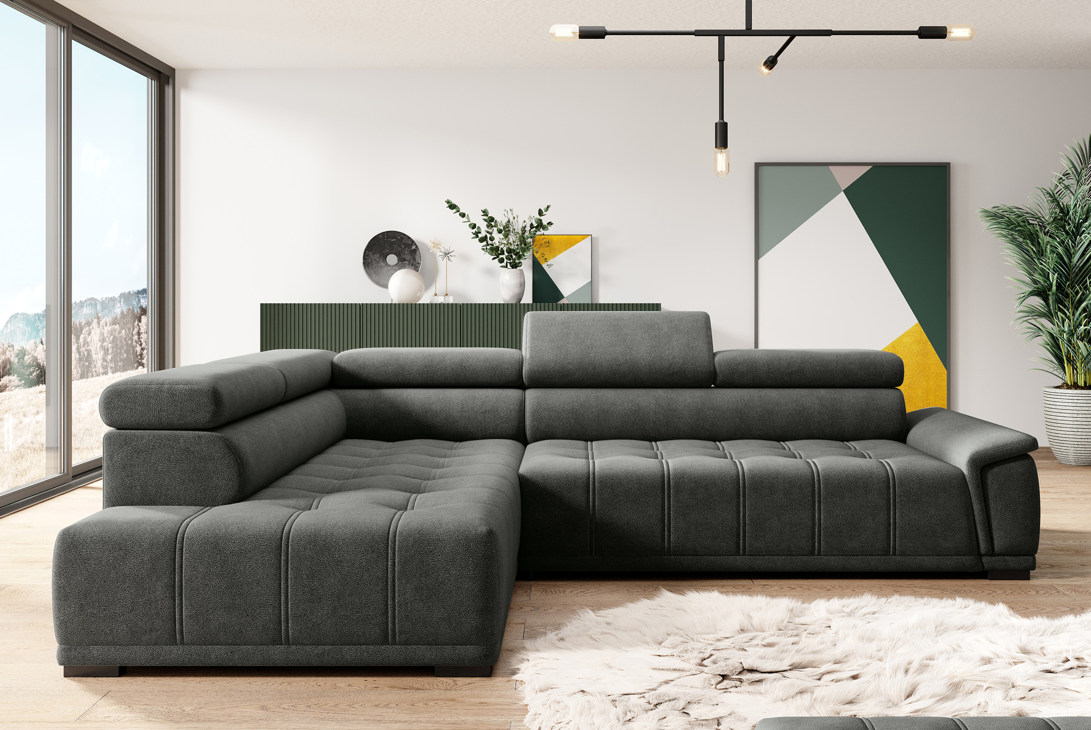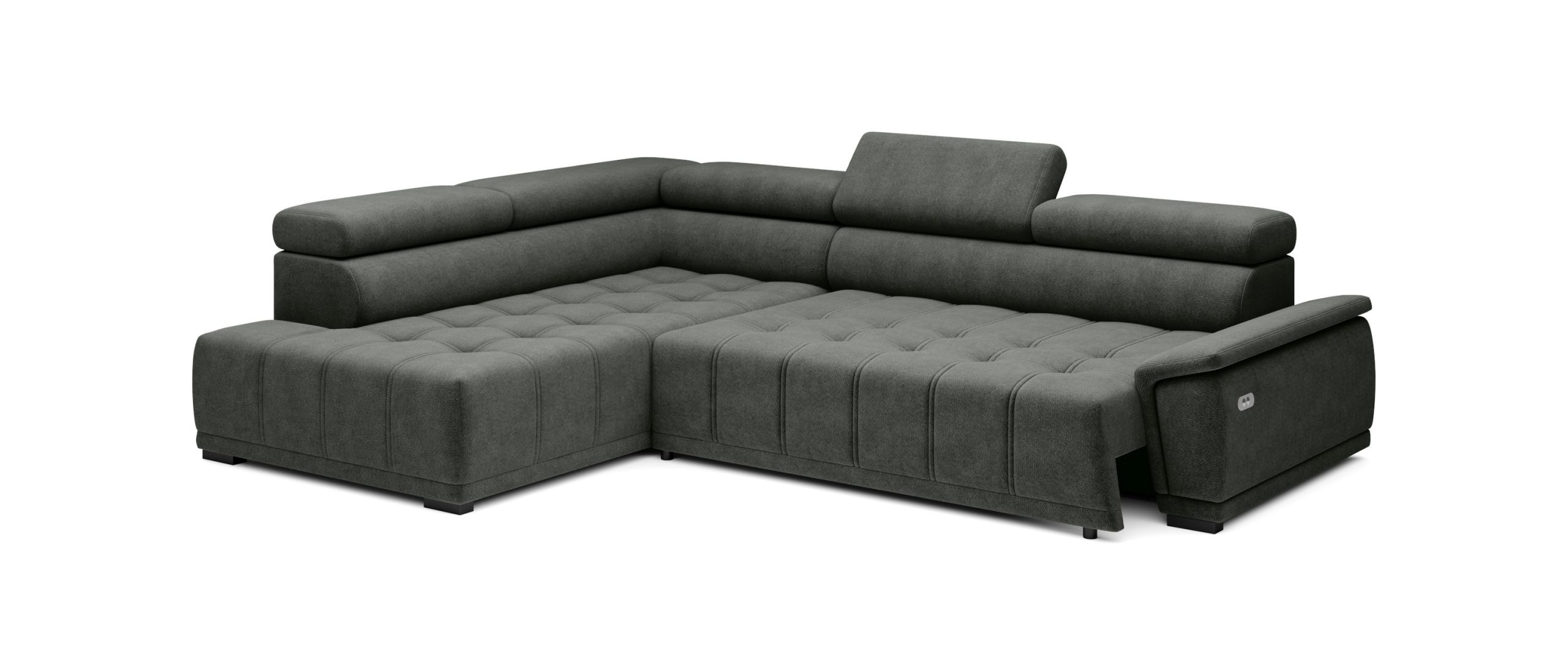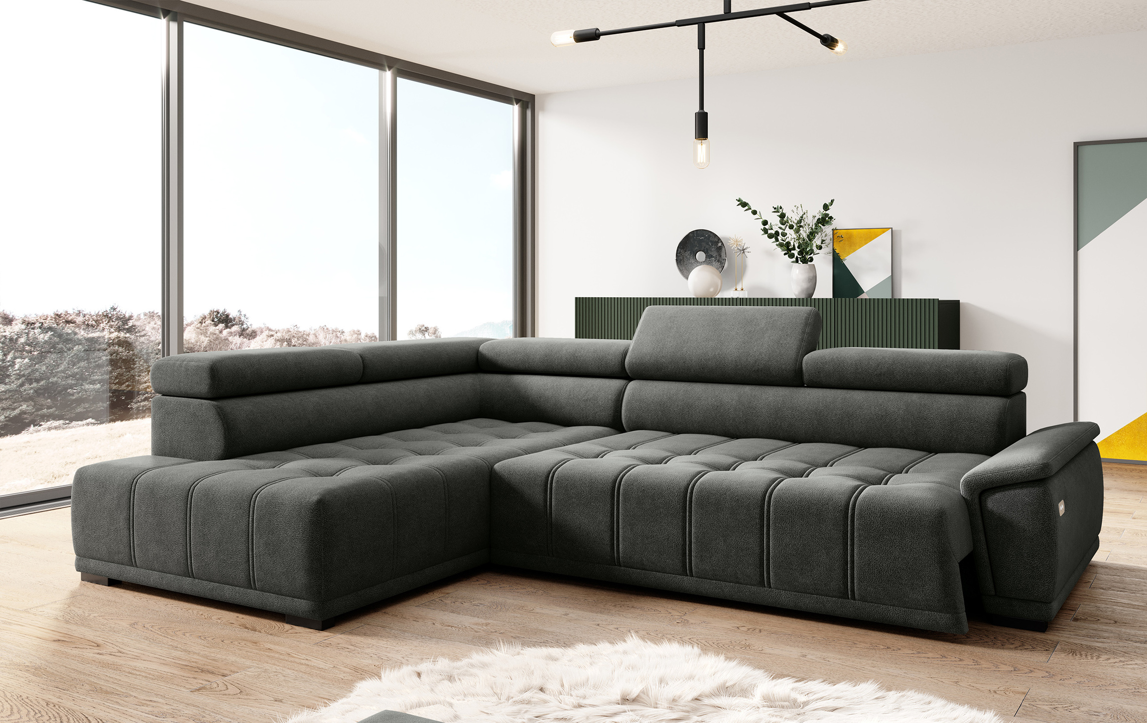 Narożnik GREMIO 283 cm, Elektryczny wysuw siedziska, Zagłówki
