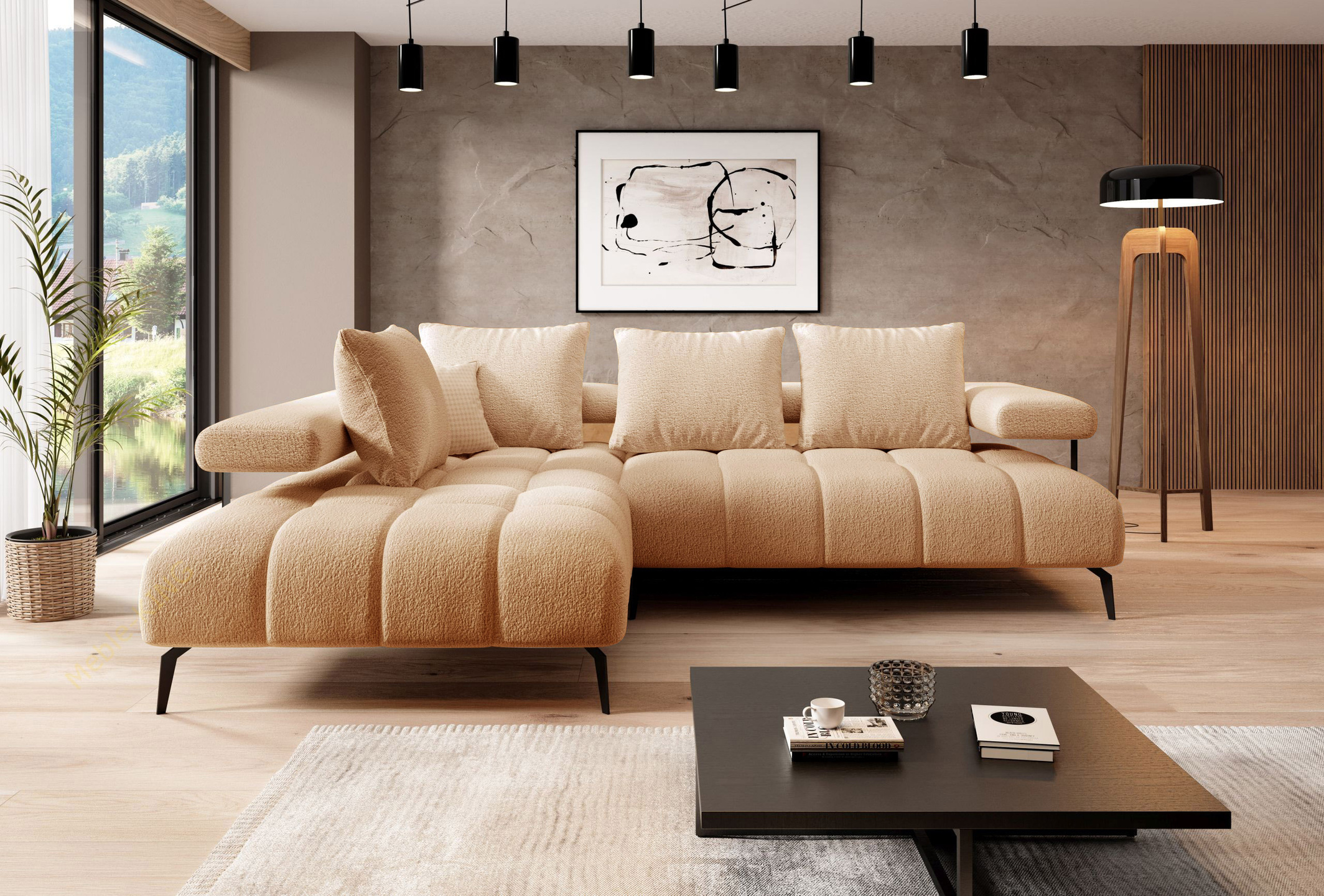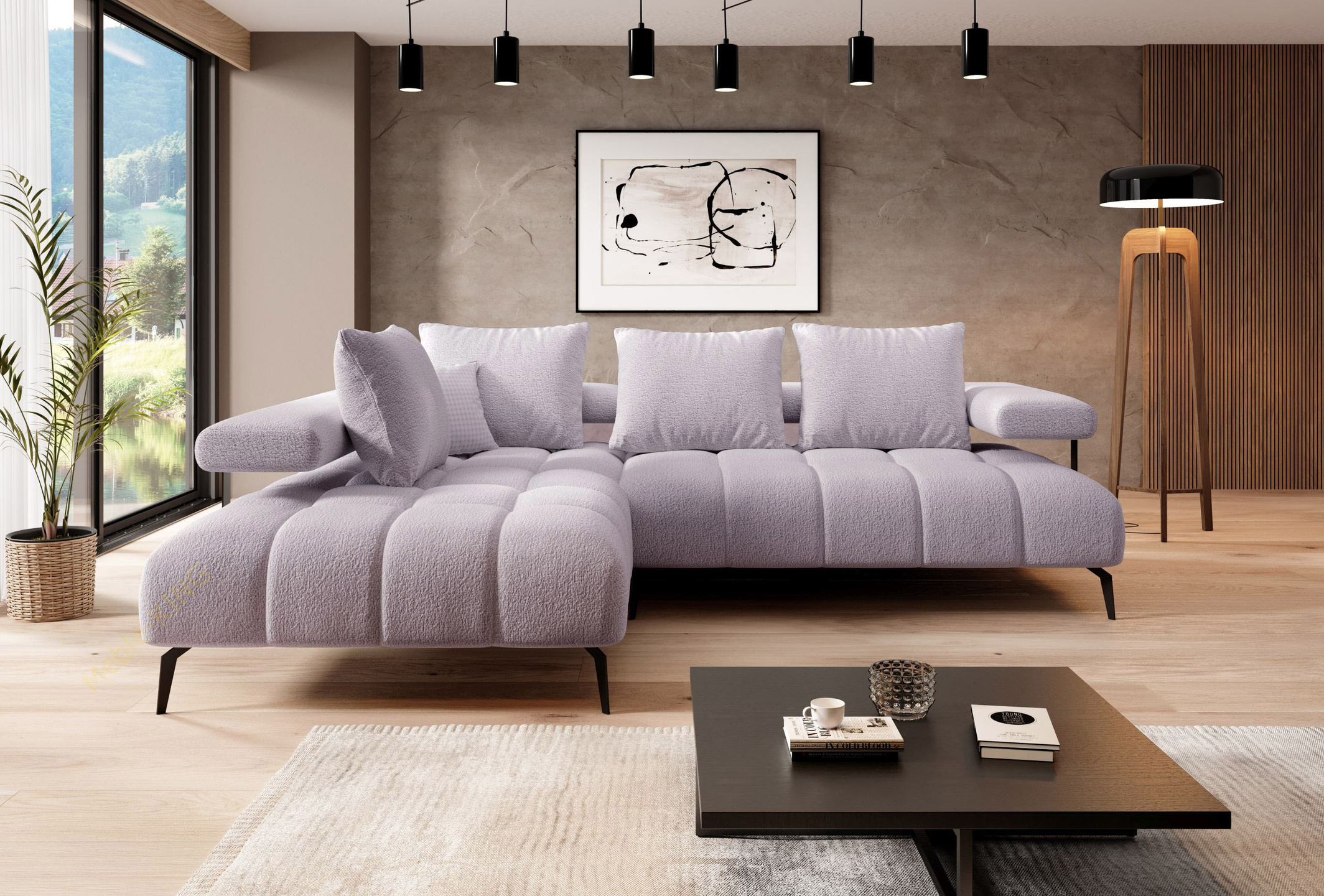 - tył narożnika obity w tkaninie, więc spokojnie może stać na środku pokoju