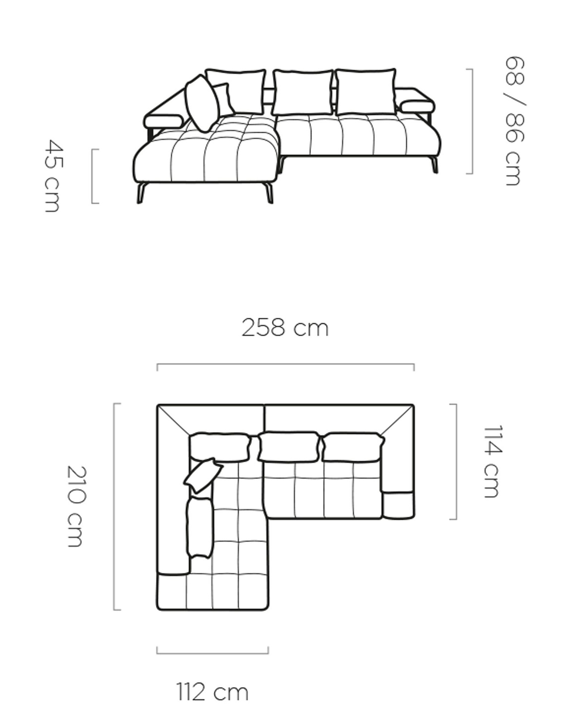 Narożnik MAGNETIC L 258 cm, Elektryczny wysuw siedziska