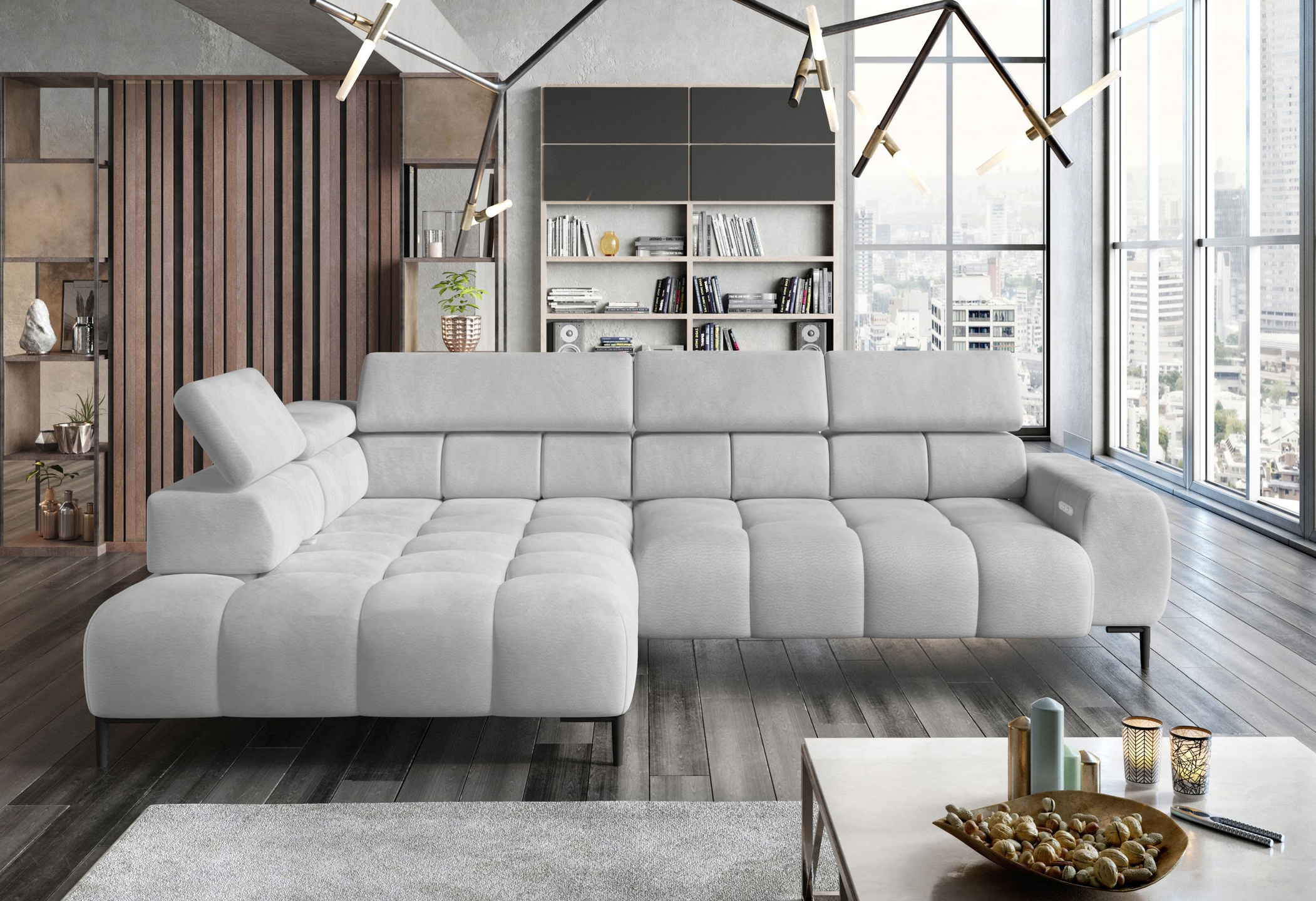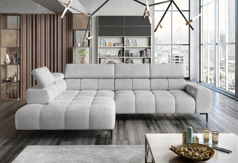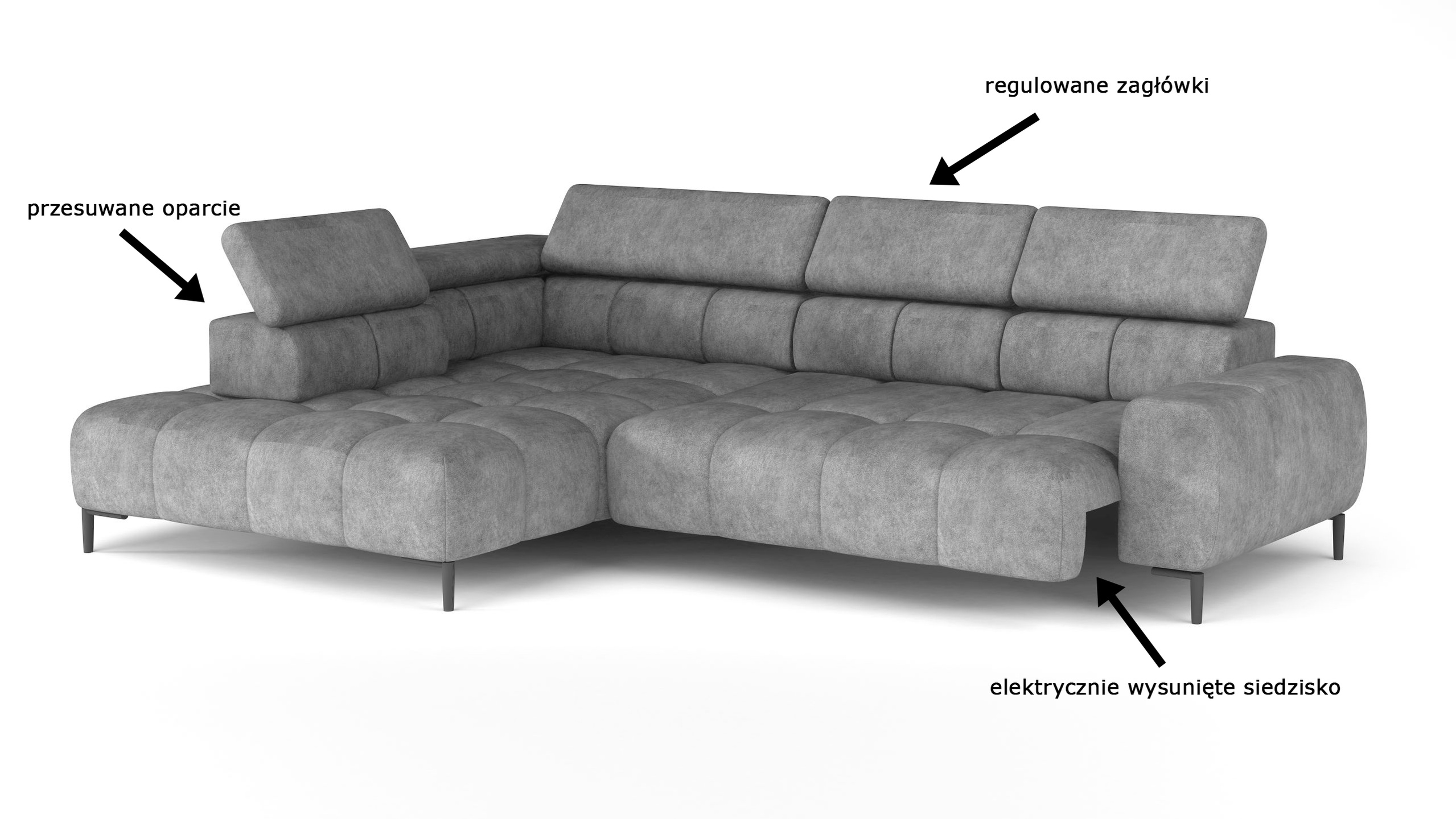 Narożnik PLAZA L 300 cm, Elektryczna regulacja siedziska, Zagłówki