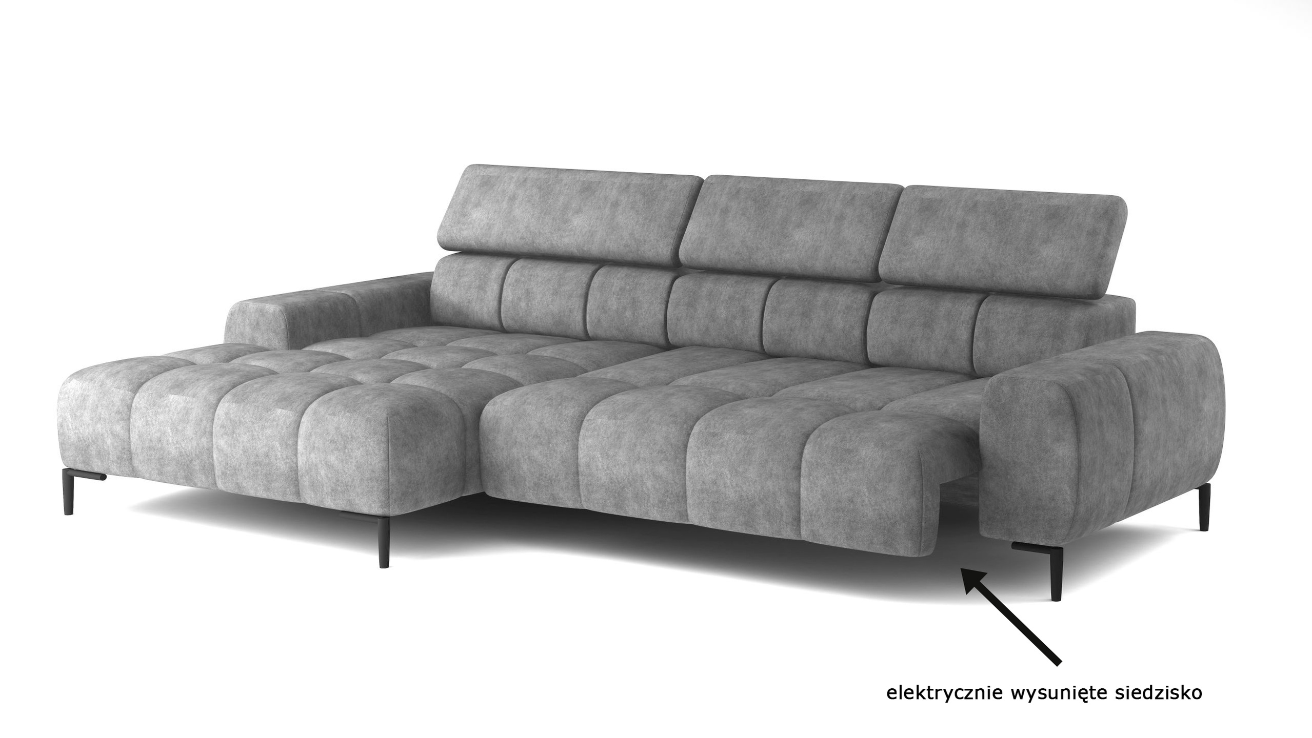 Narożnik PLAZA S 270 cm, Elektryczna regulacja siedziska, Zagłówki