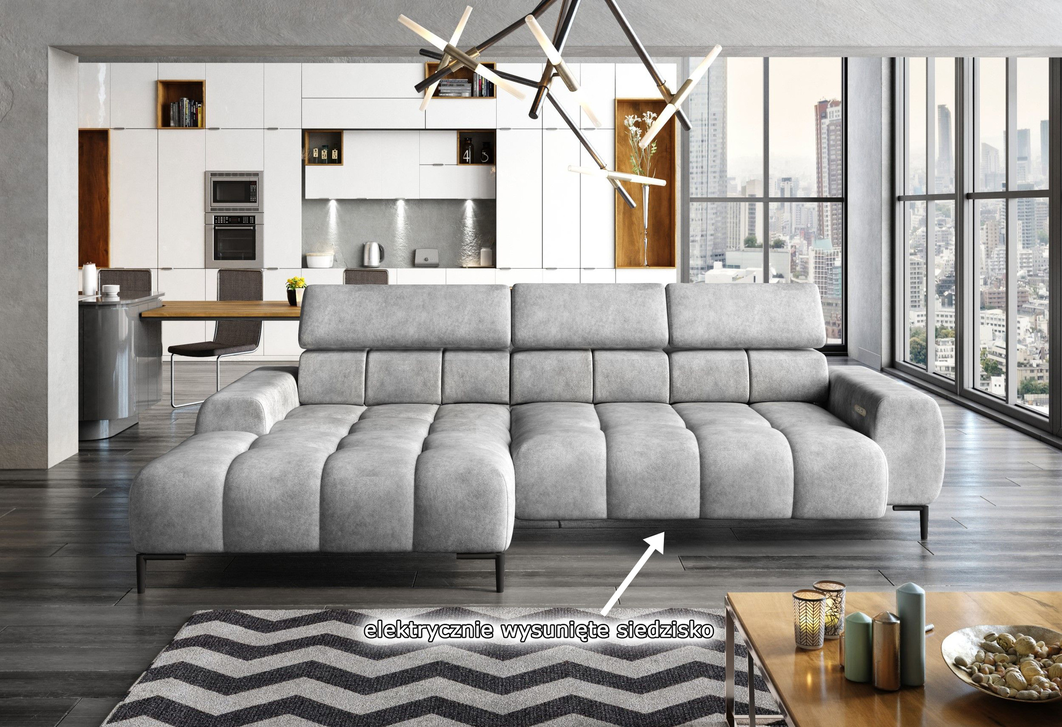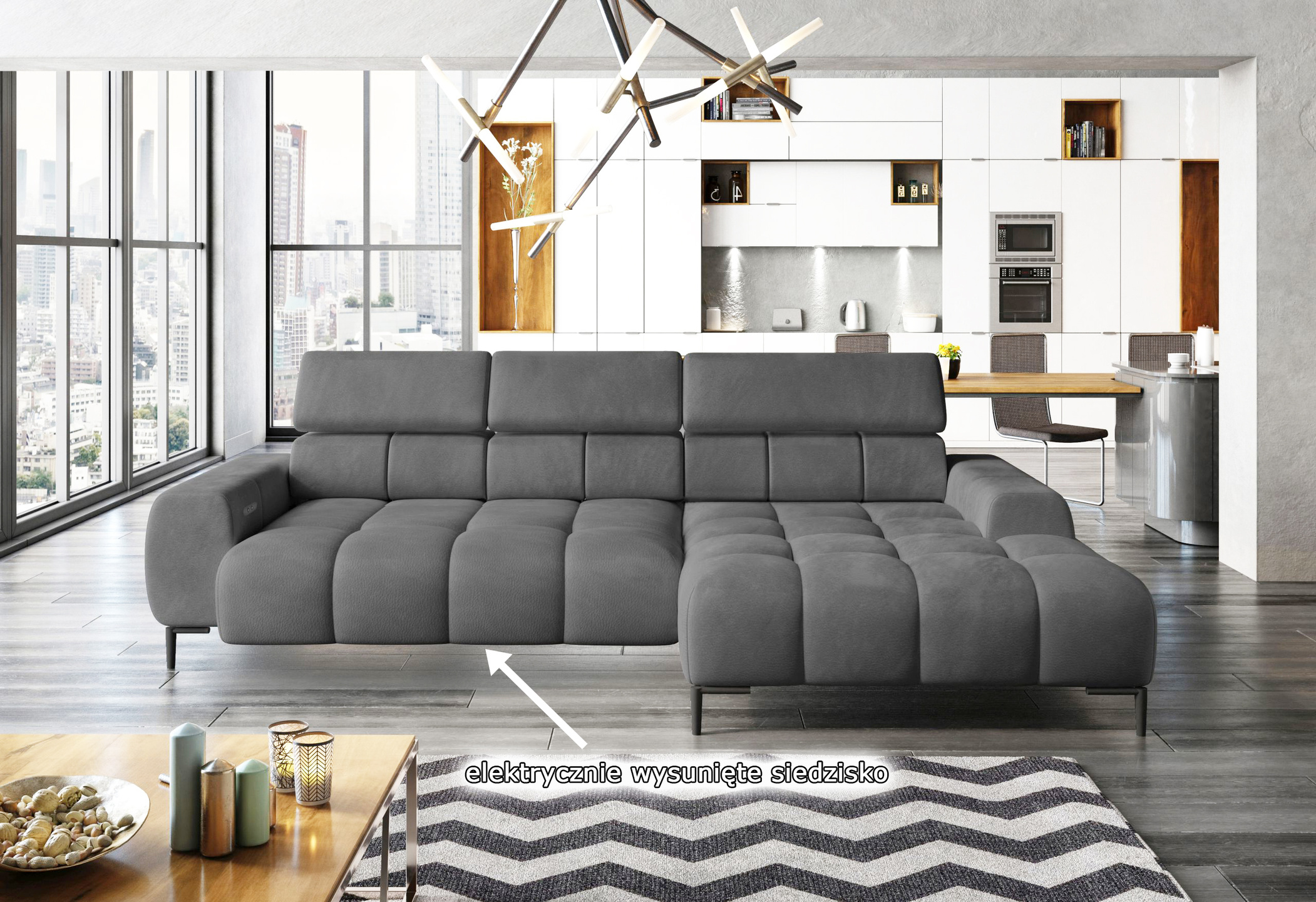 To prawdziwa perełka dla fanów wygody i dobrego wzornictwa. Oprócz niekwestionowanego efektu wizualnego, mebel wyposażono w funkcjonalności, które podnoszą jego zalety użytkowe. Jedną z nich jest elektryczny wysuw siedziska.