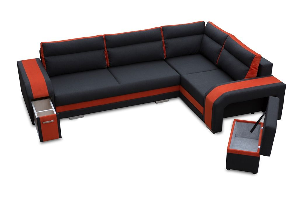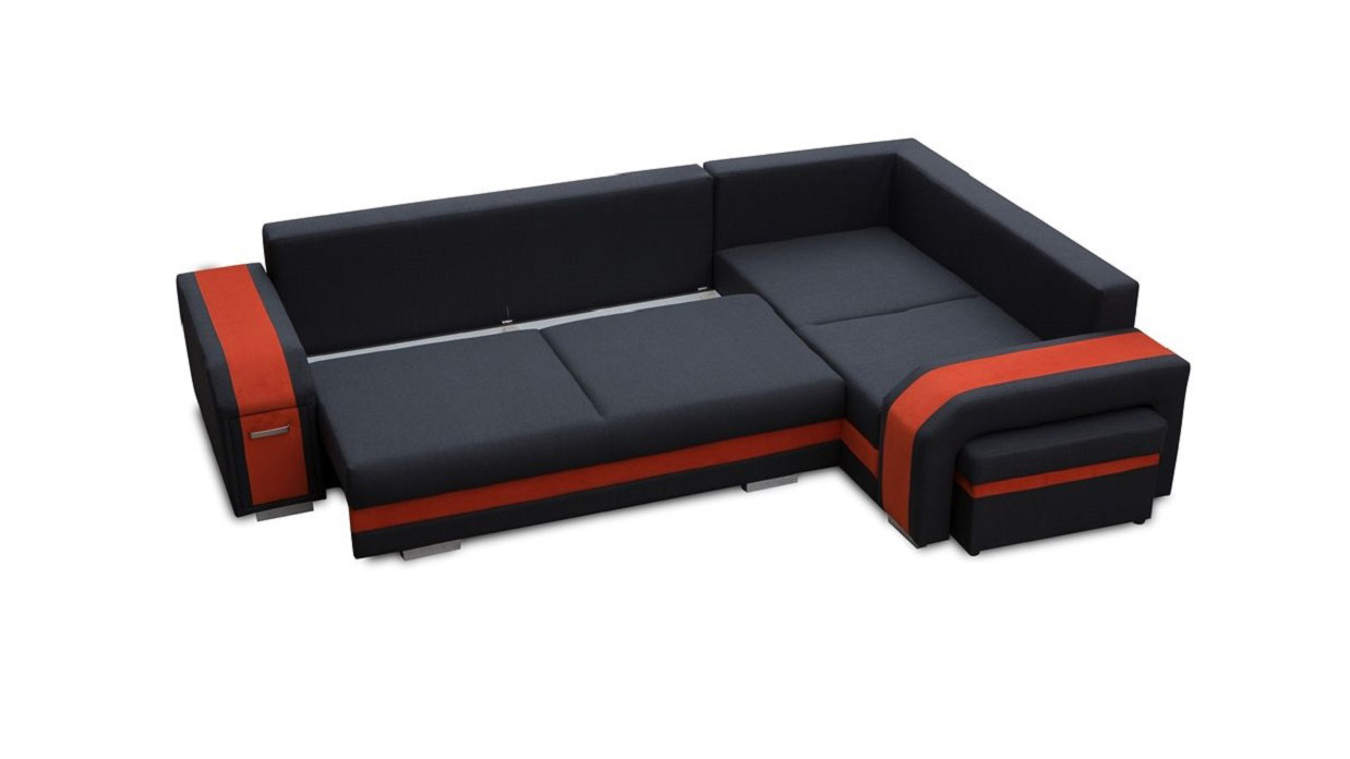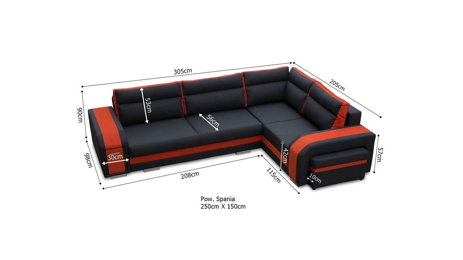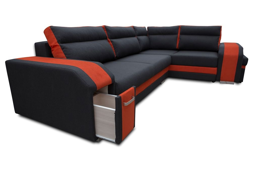 Narożnik rozkładany ASSAN 305 cm, Rogówka, Rozkładany, Pufa, Barek