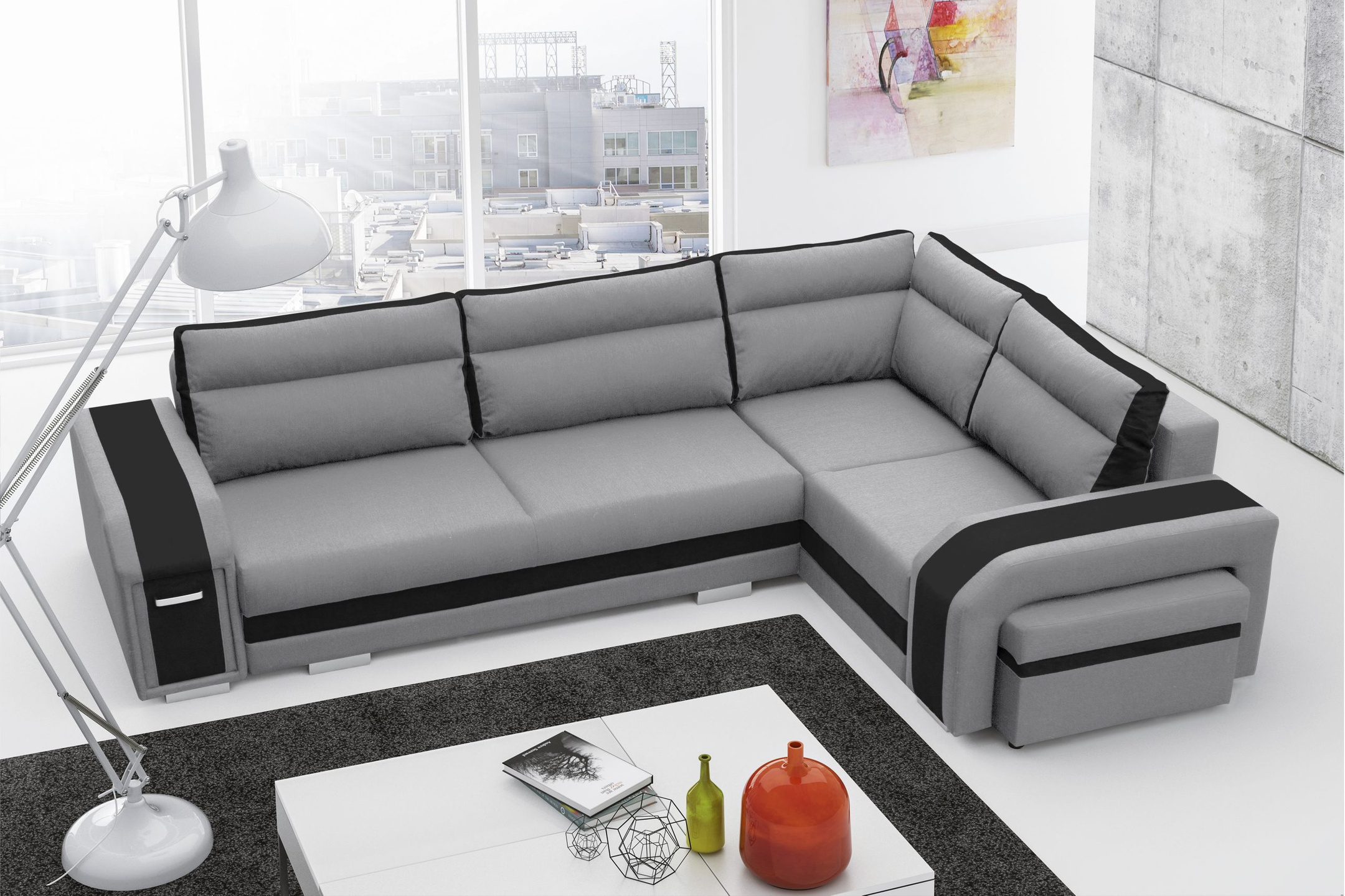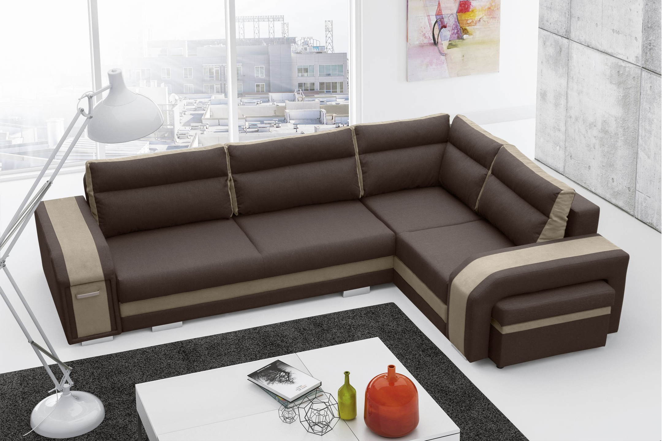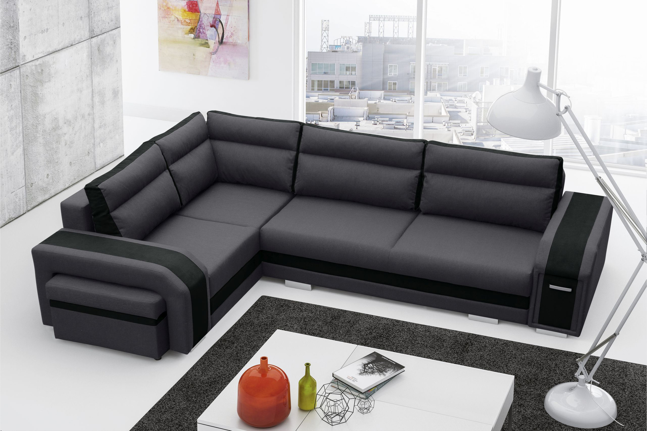 Narożnik rozkładany ASSAN 305 cm, Rogówka, Rozkładany, Pufa, Barek