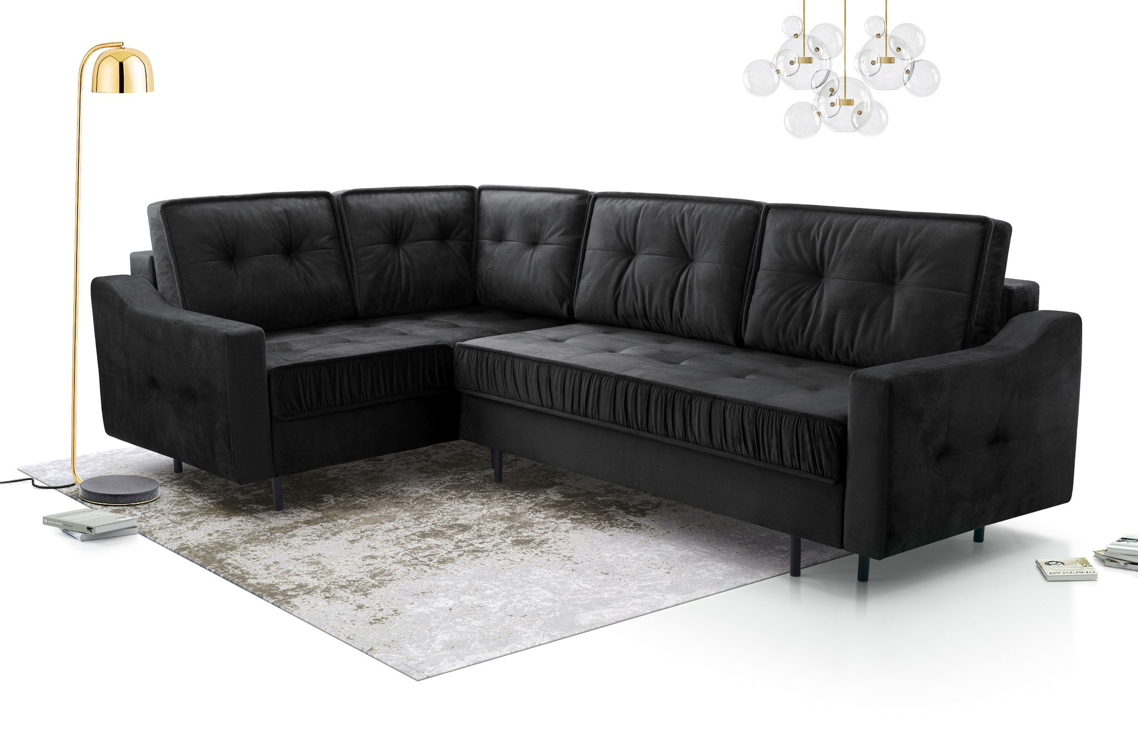 tył obity w tkaninie, więc narożnik spokojnie może stać na środku pokoju