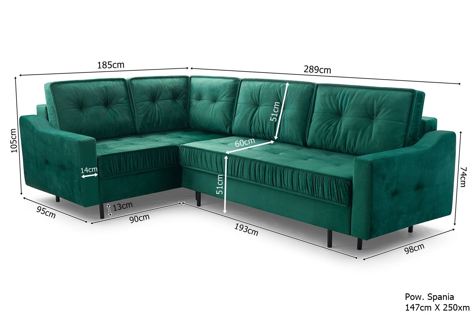 Narożnik z funkcją spania AKITA 289 cm, Rozkładany, 2xPojemnik, Rogówka