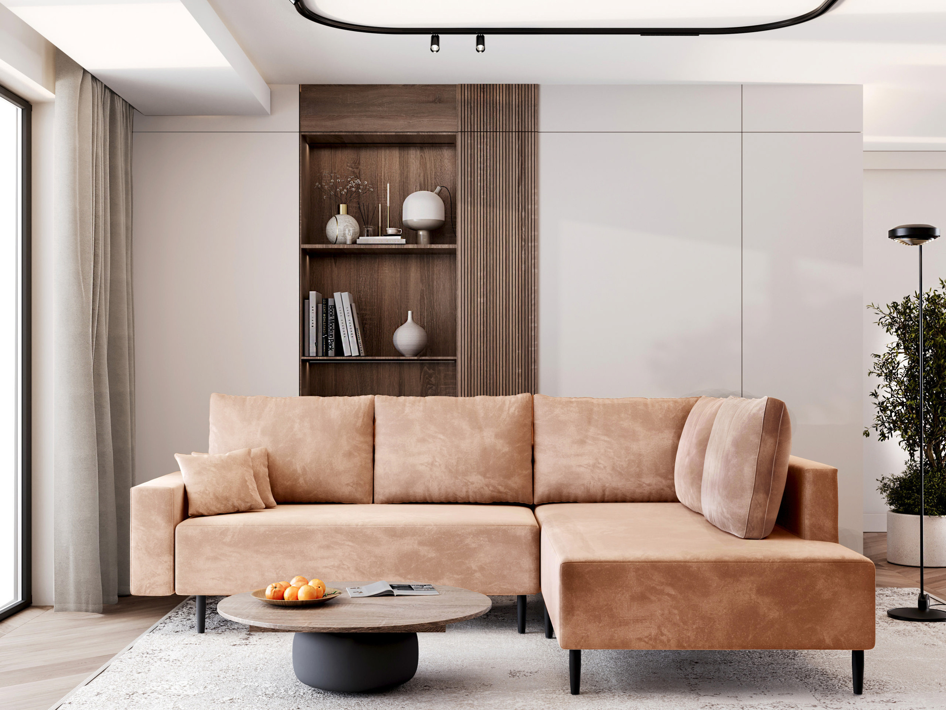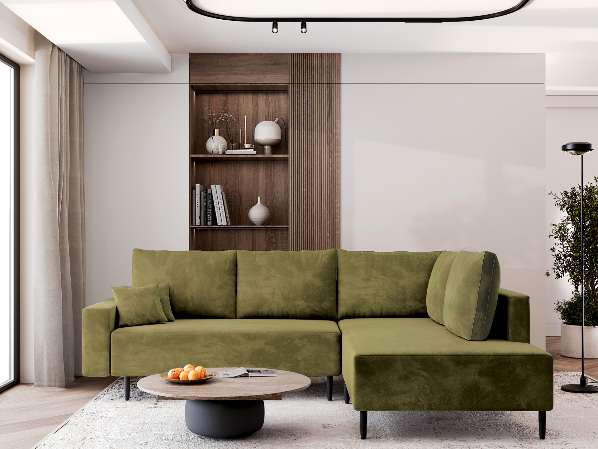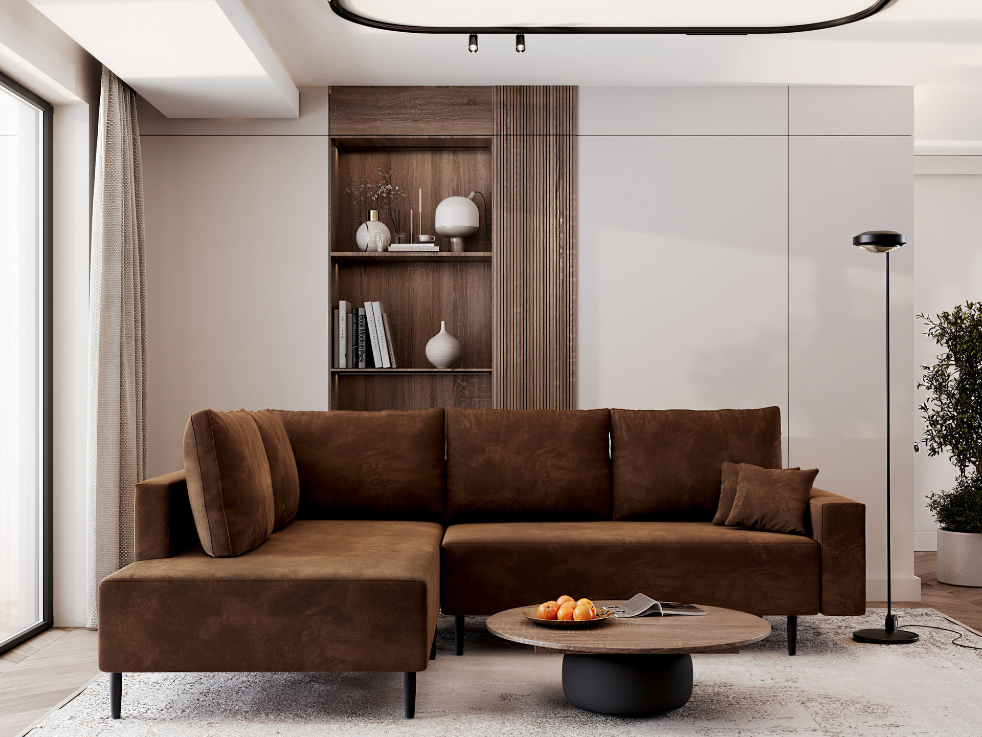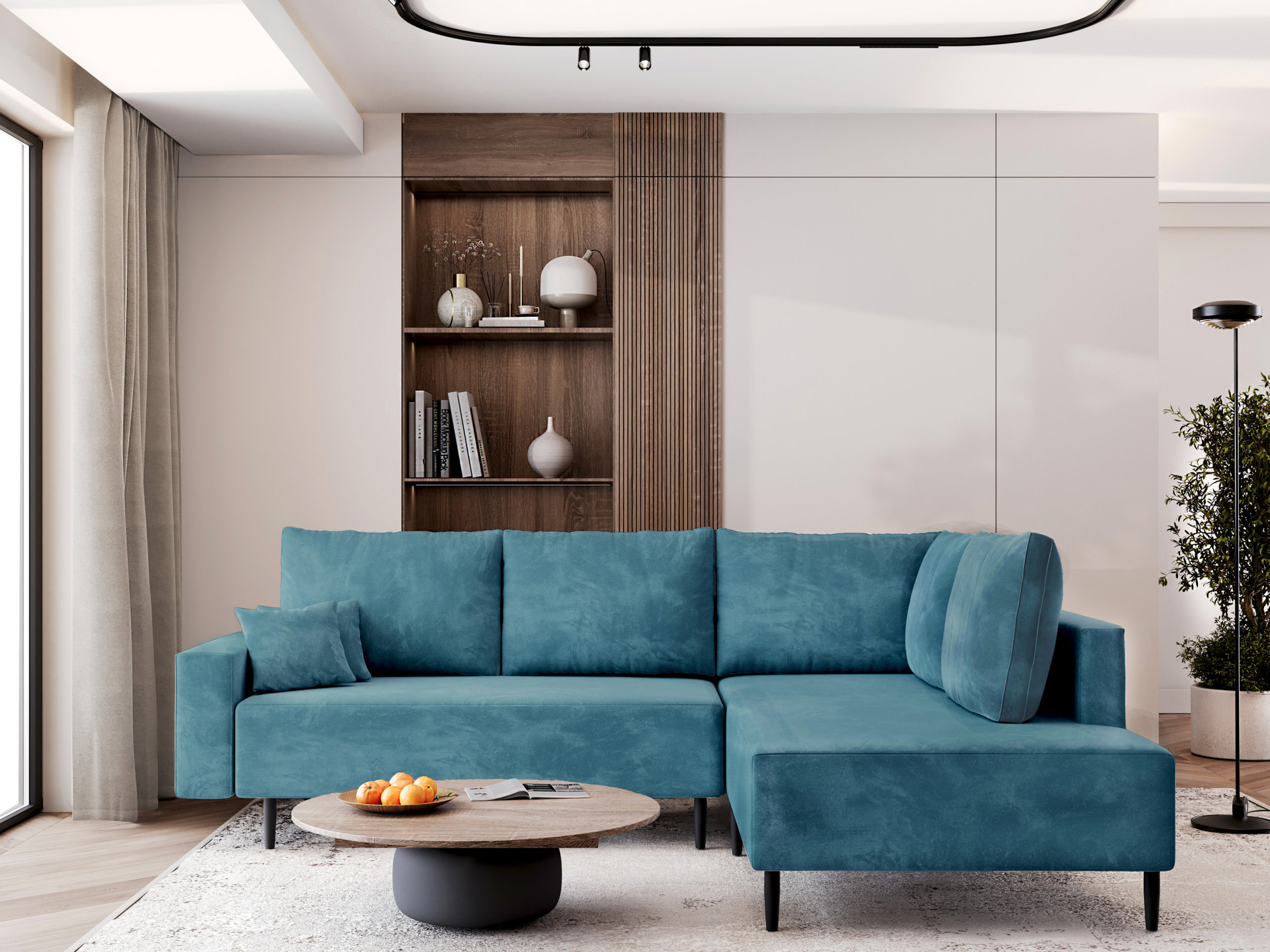 tył narożnika obity w tkaninie, więc spokojnie może stać na środku pokoju
