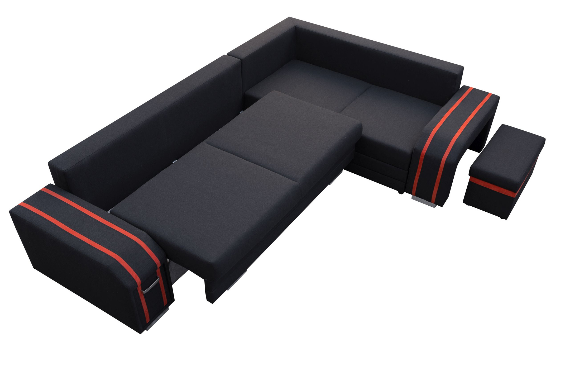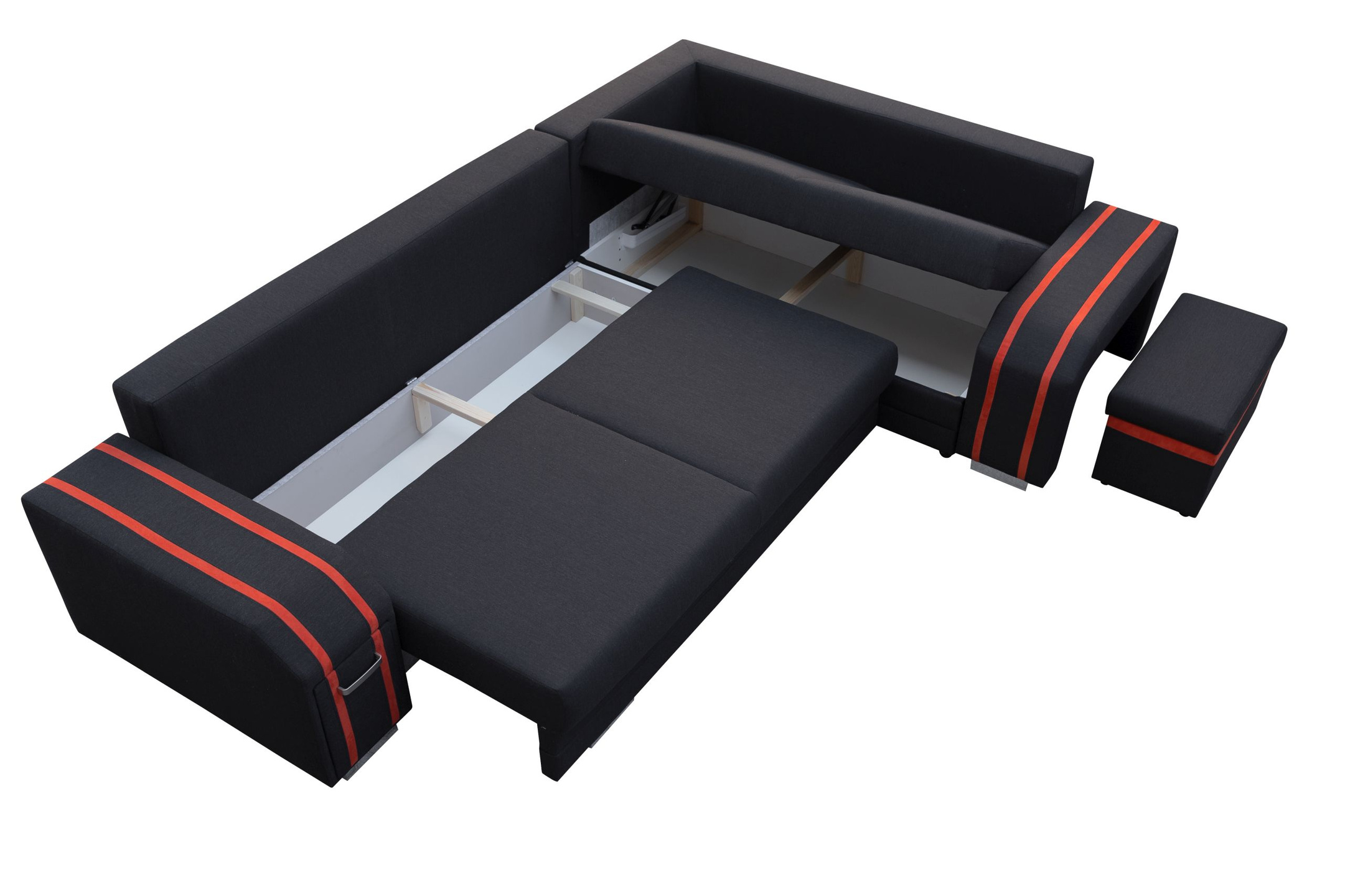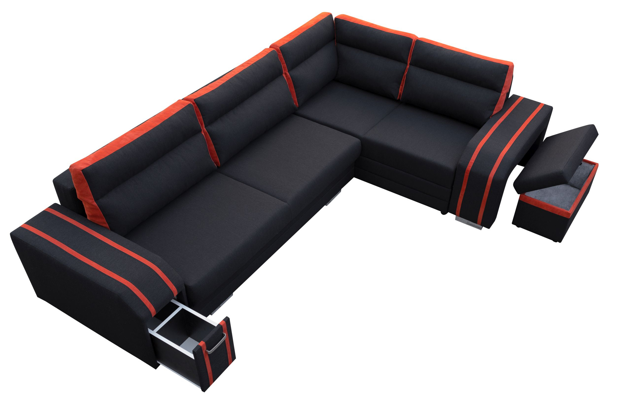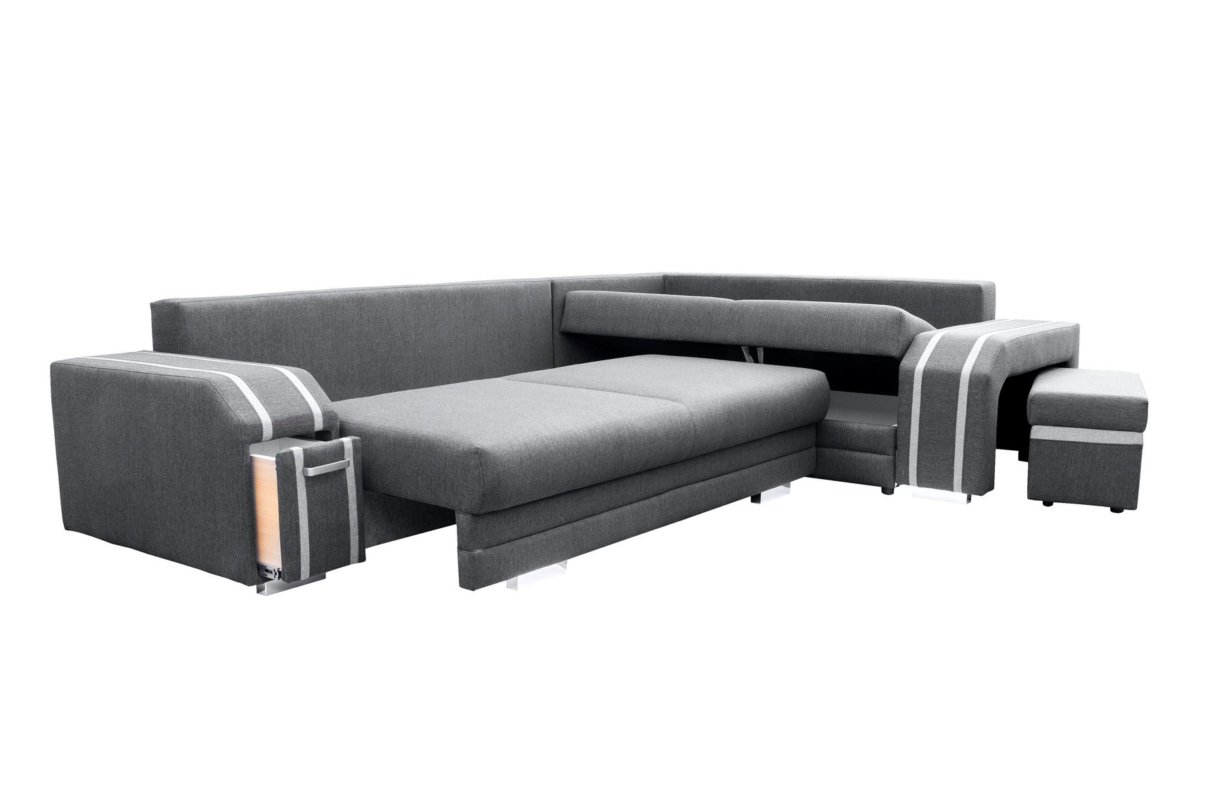 Narożnik z funkcją spania AVATAR 305 cm, Rozkładany, Rogówka, Pufa, Barek