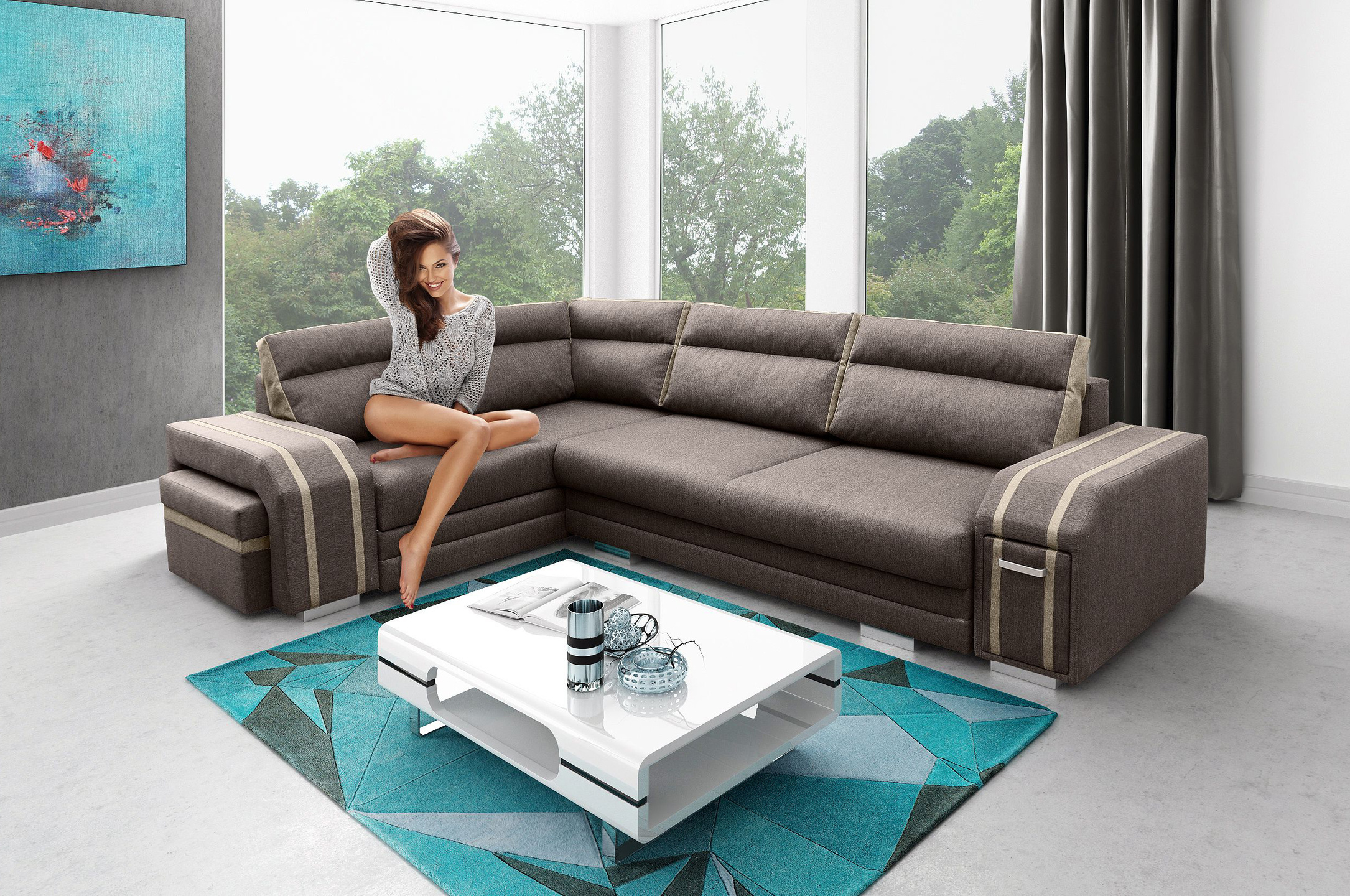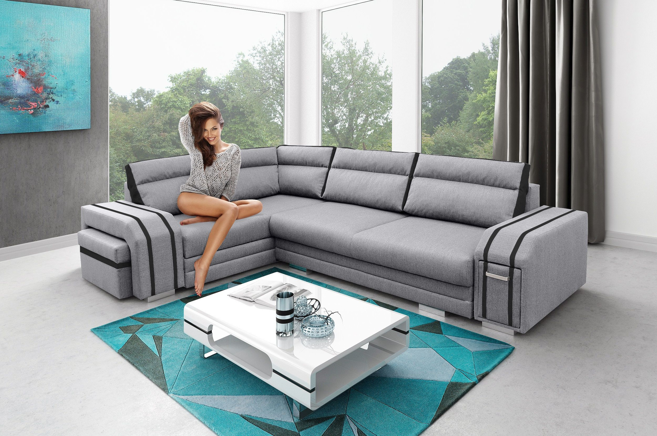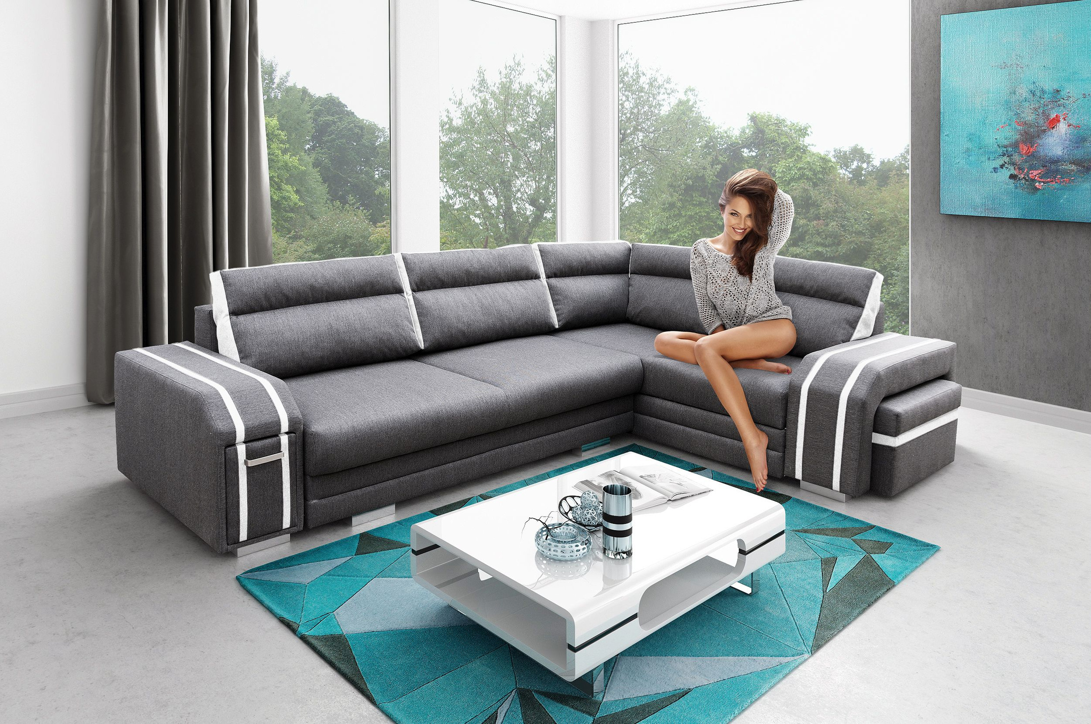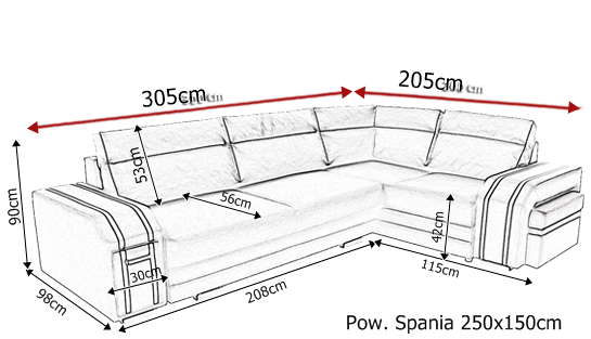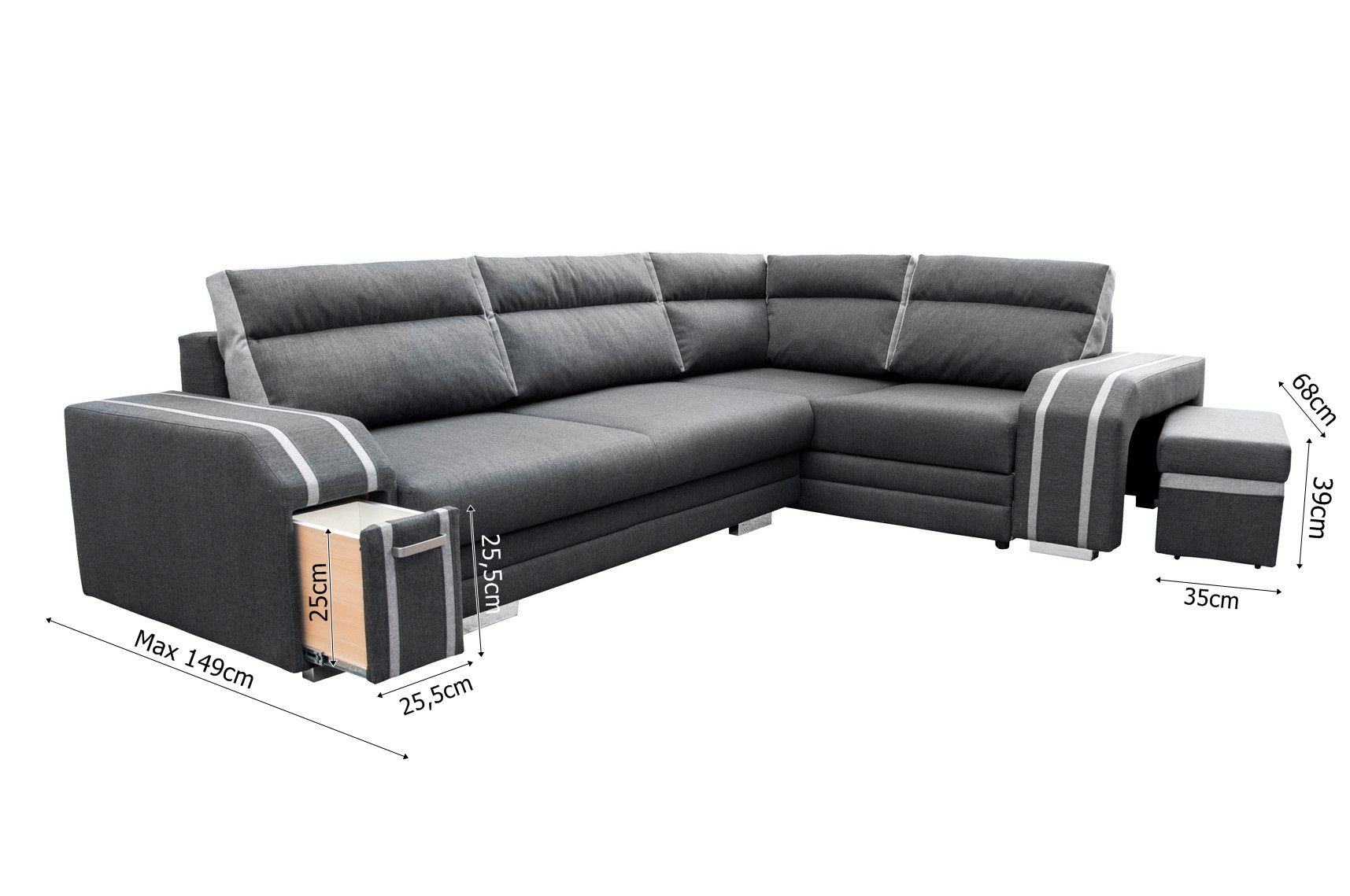 Narożnik z funkcją spania AVATAR 305 cm, Rozkładany, Rogówka, Pufa, Barek