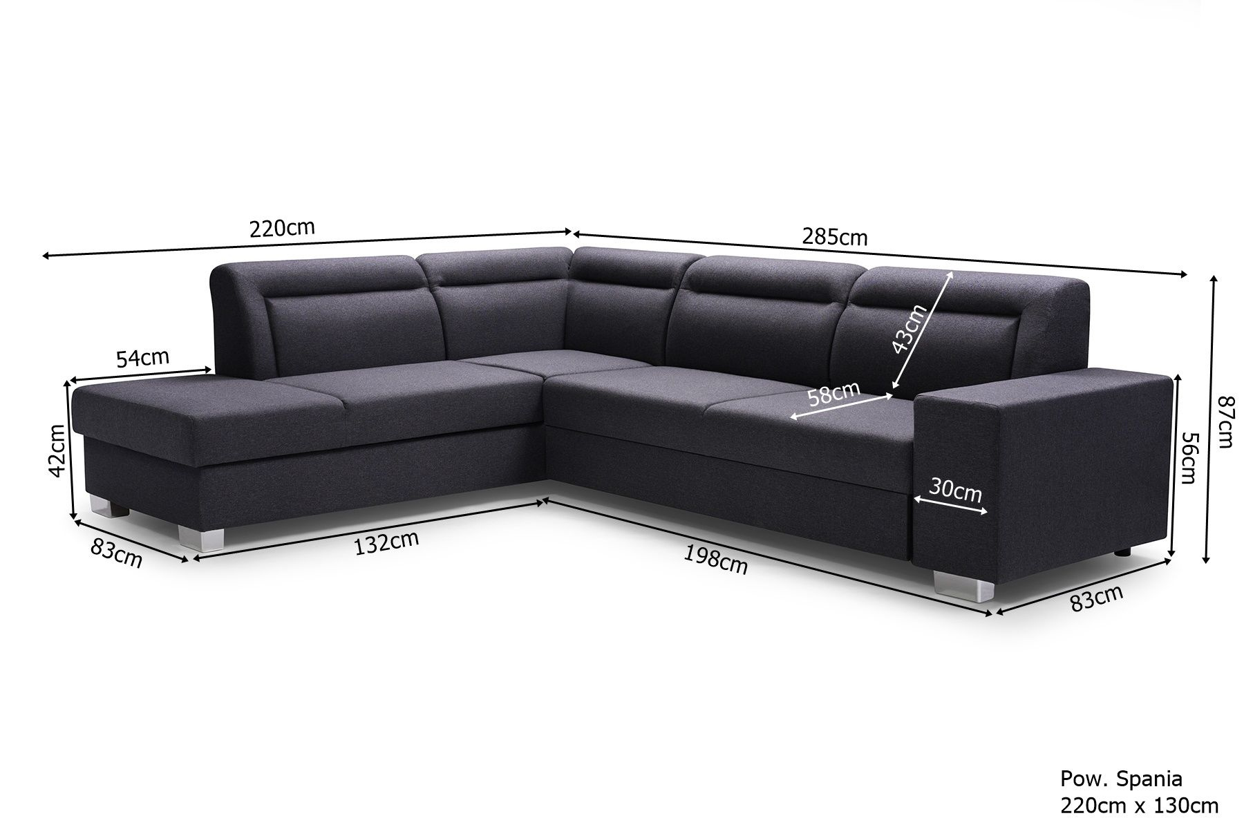 Narożnik z funkcją spania DAVER 285 cm, Rozkładany, Rogówka