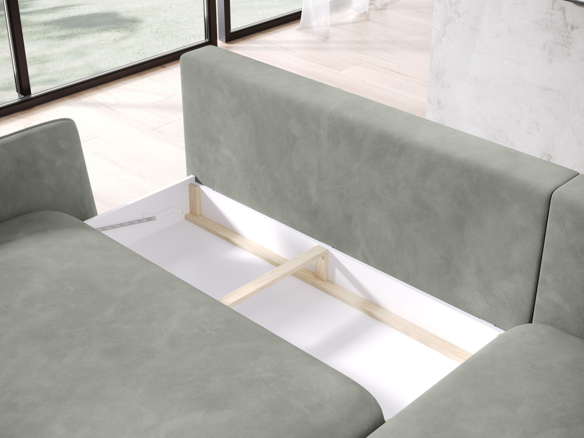 Narożnik z funkcją spania GLOSSY 226 cm, Automat, Pojemnik, Sprężyny