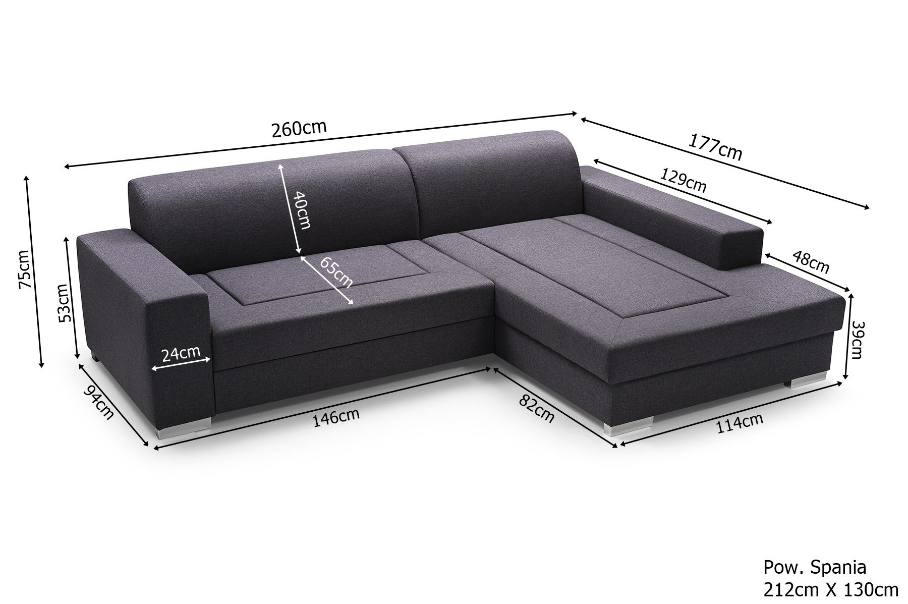 Narożnik z funkcją spania MALWA 260cm, Rozkładany, Rogówka