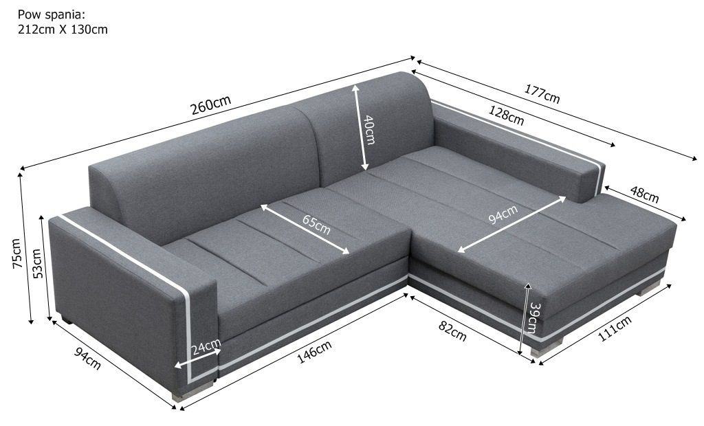 Narożnik z funkcją spania MARTIN 260 cm, Rozkładany, Rogówka