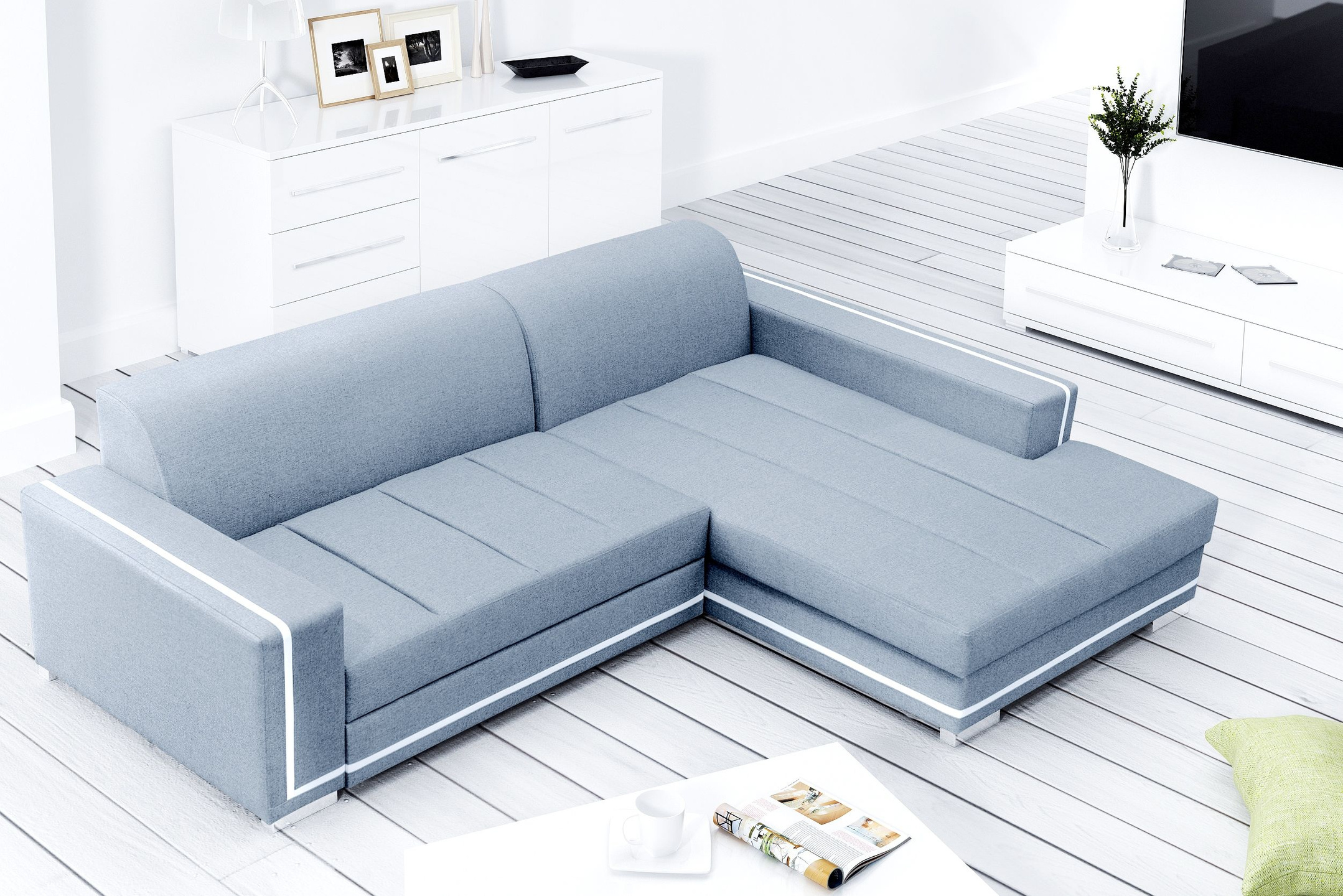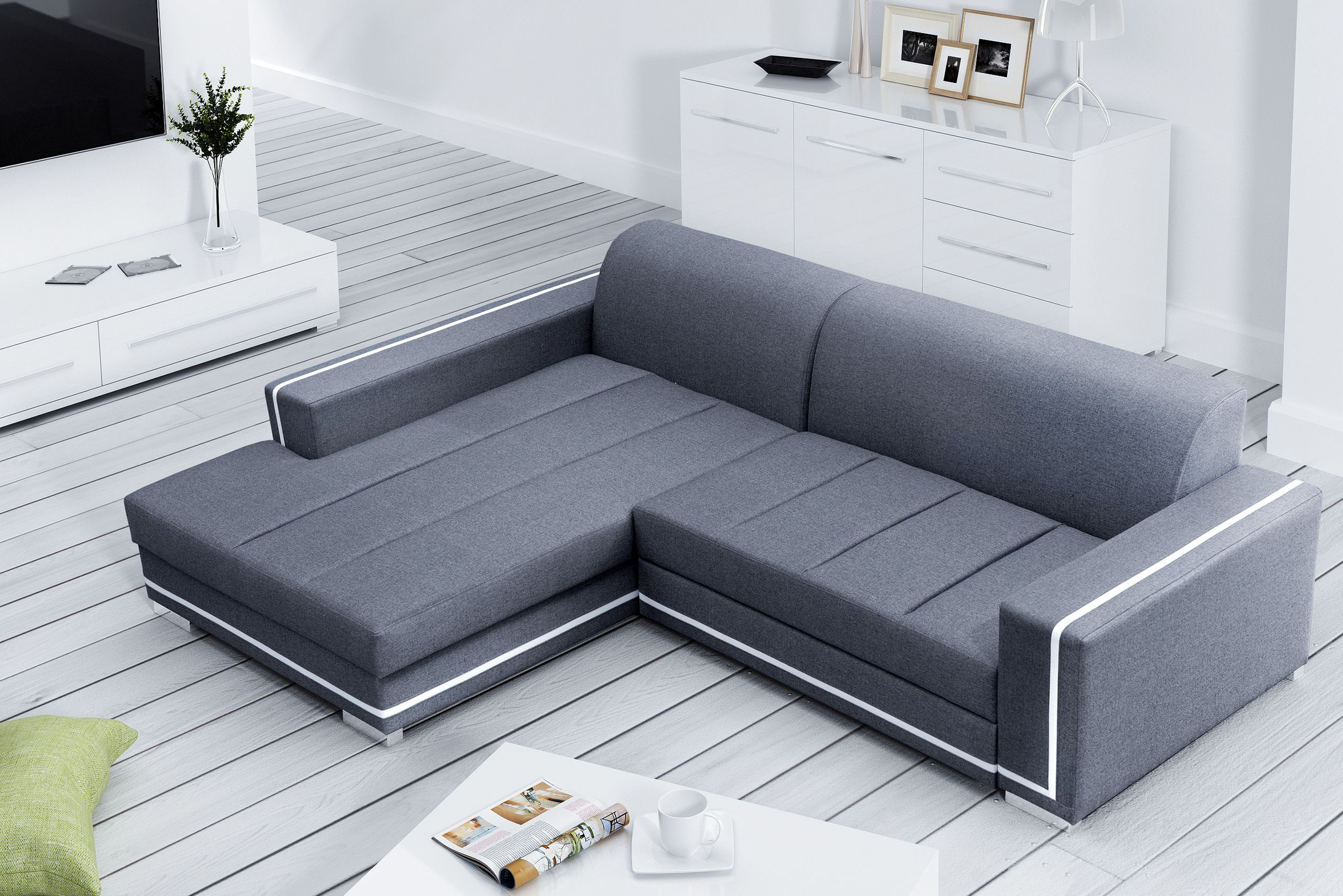 tył narożnika obity w tkaninie, więc spokojnie może stać na środku pokoju